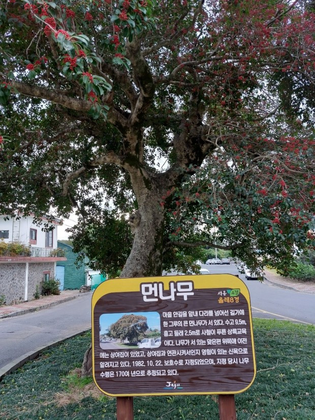 이곳은 훗날 읍사무소, 서귀포시청 등으로 활용됐다. 그리고 나무는 1971년 8월 26일 제주특별자치도 기념물 제15호로 지정됐다. 군사정권 시절이라 제주 4․3을 진압한 2 연대가 주둔했던 사실에 의미를 부여하고, 먼나무의 수형이 수려하니 이 또한 높이 사려는 의도였다.