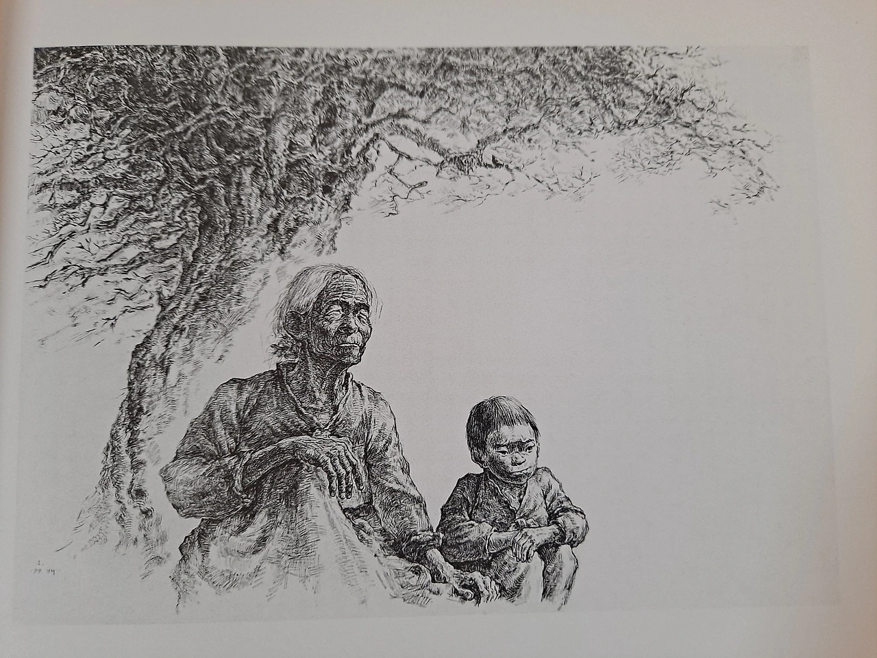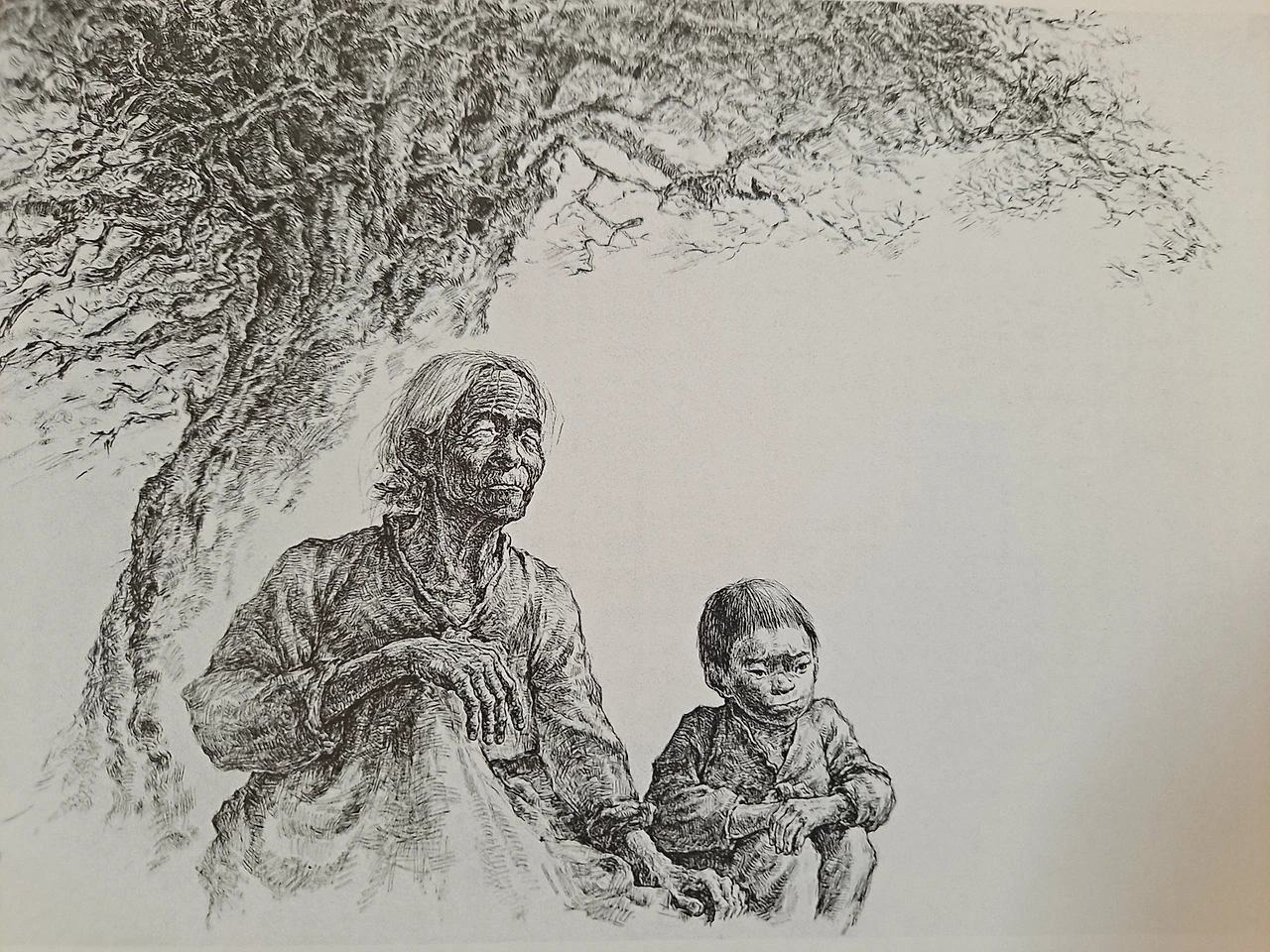 할머니는 손자에게 이야기를 하고 팽나무는 듣고 있었다