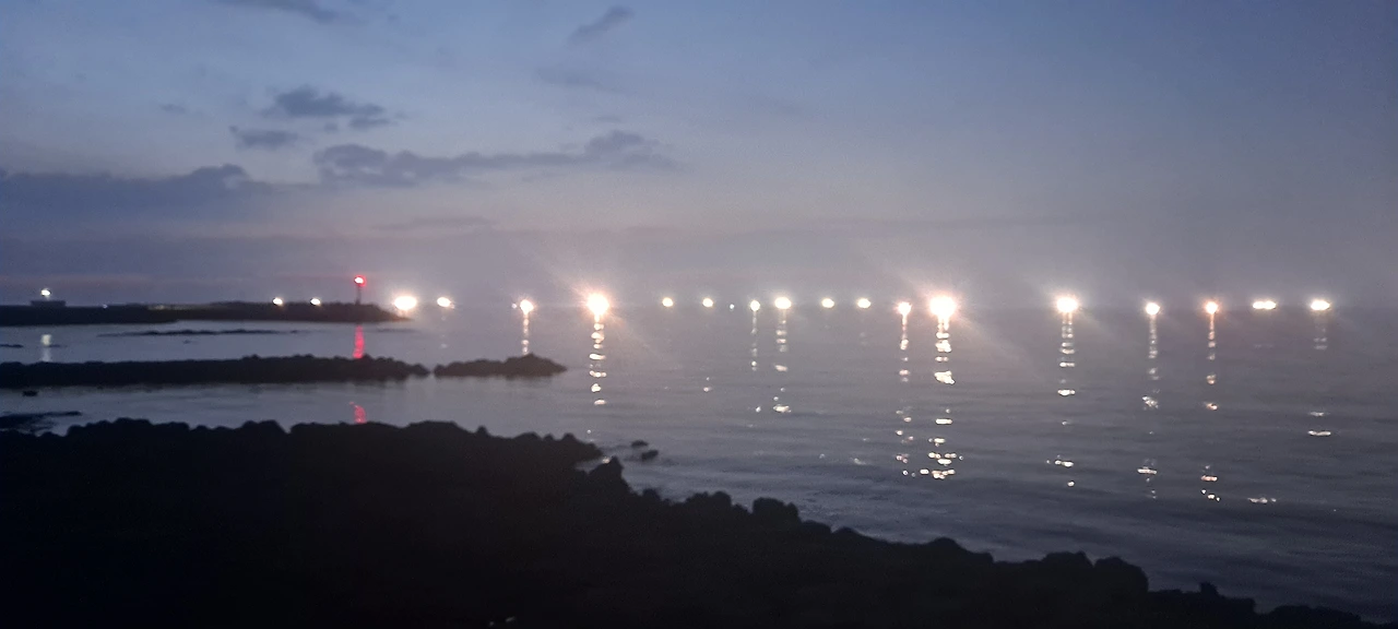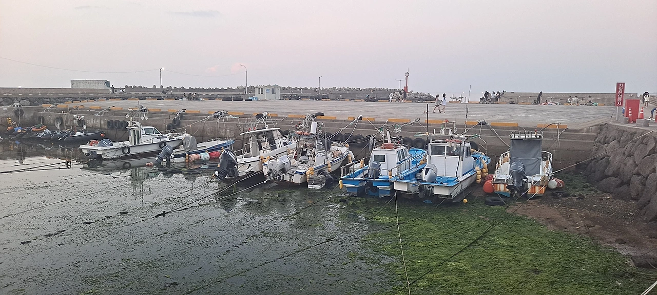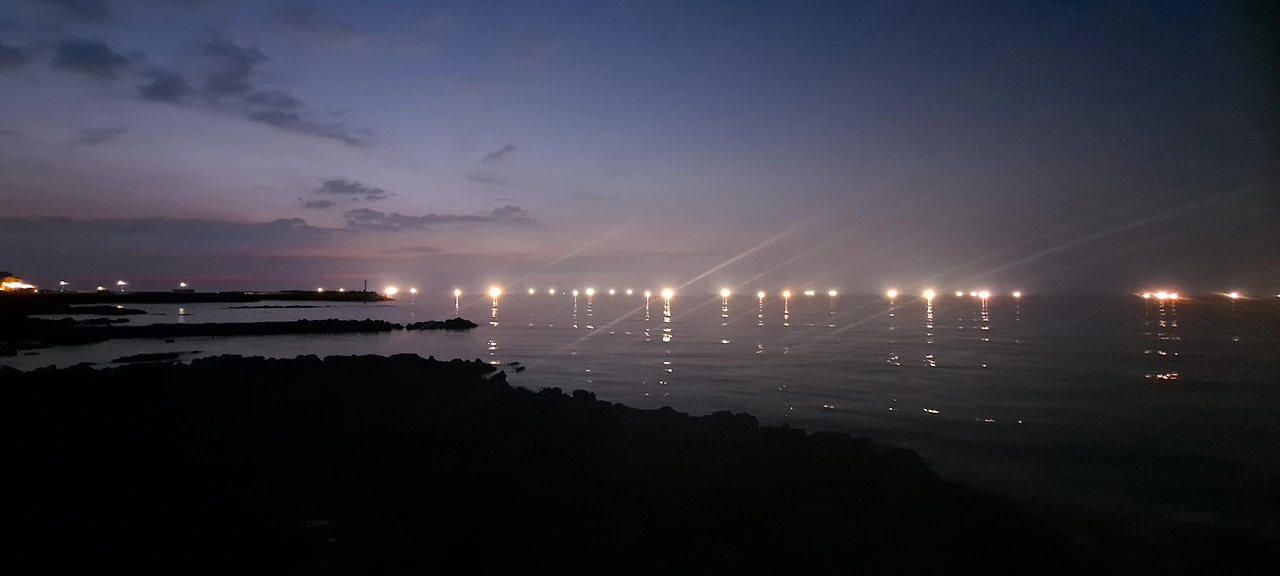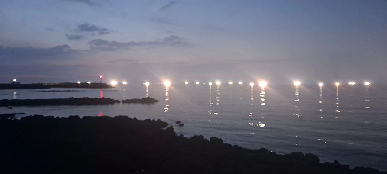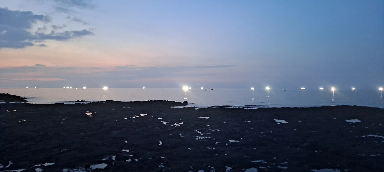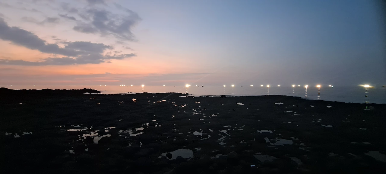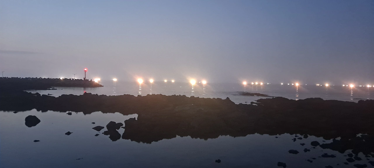 수평선을 따라서 배들이 꽃을 싣고 간다