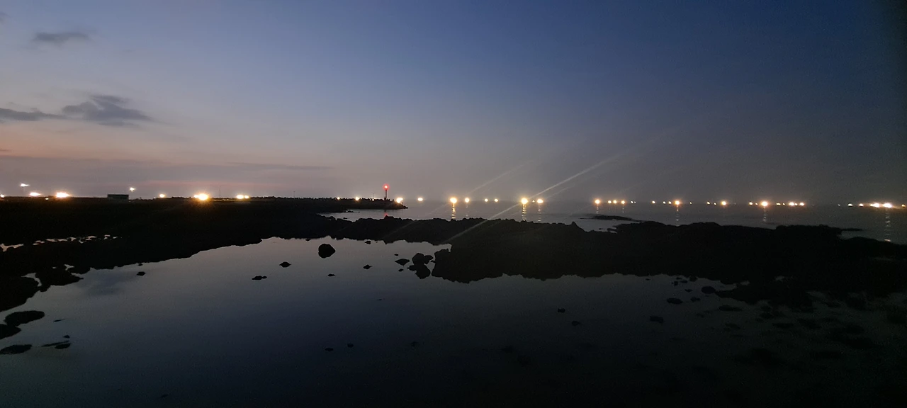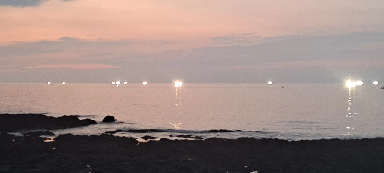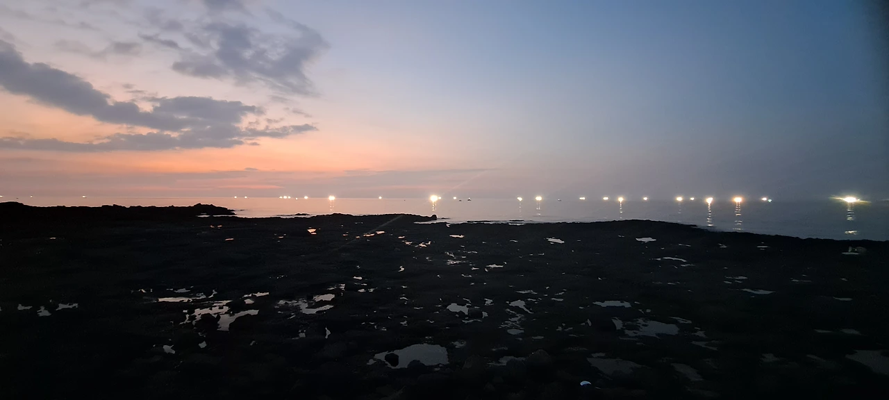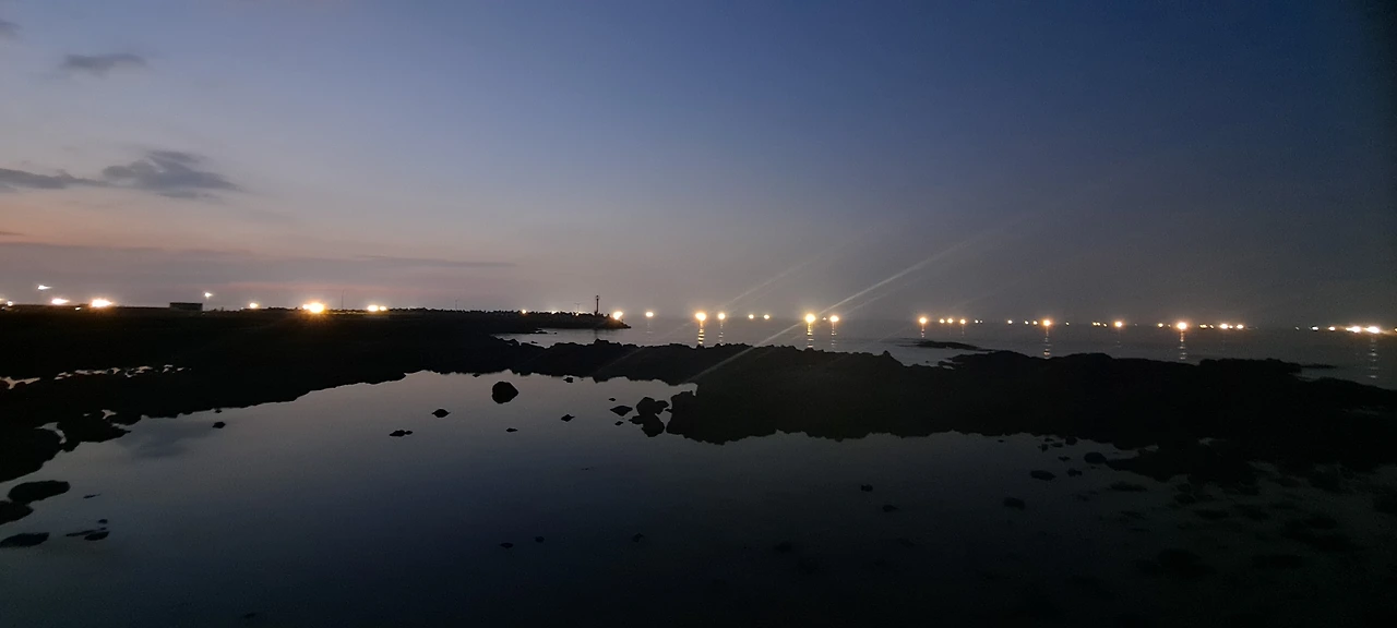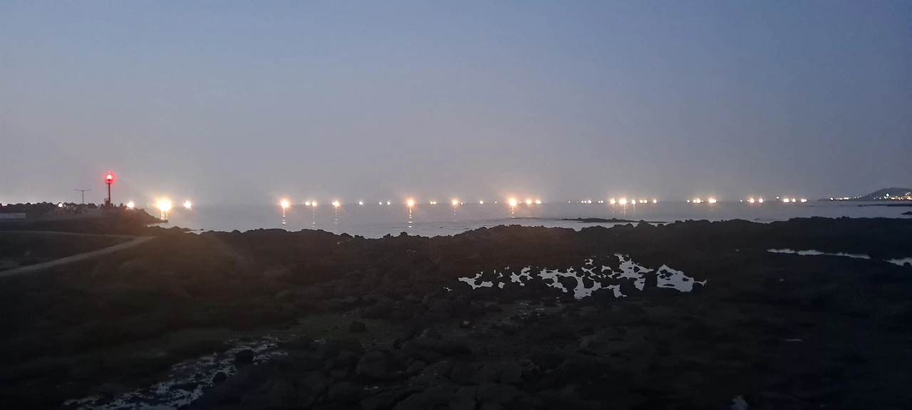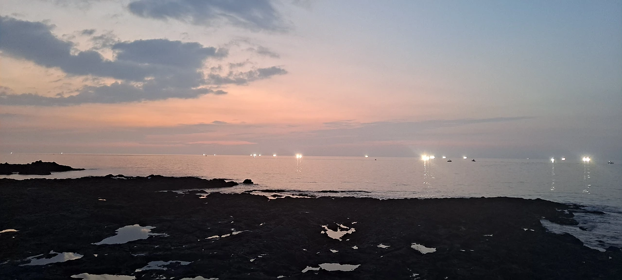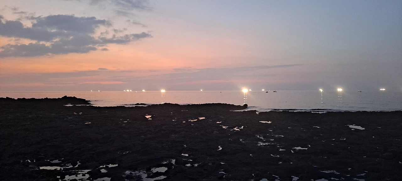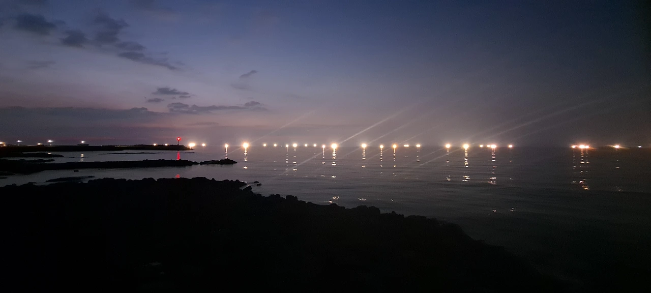 수평선을 따라서 배들이 꽃을 싣고 간다