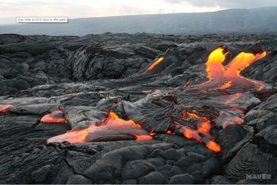 그림 1. 하와이 국립공원의 용암 https://www.nps.gov/havo/learn/news/park-offers-route-and-tips-for-viewing-lava-flows.htm