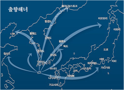 출향해녀는 19세기 말부터 제주를 떠나 국내의 경상도, 강원도, 전라도, 충청도 등지와 해외로 바깥물질을 나간 해녀를 일컫는다. 제주해녀들이 섬이나 먼 바다 어장으로 이동할 때 노를 저으며 불렀던 ‘노 젓는 소리’를 총칭하여 해녀노래라 한다. 해녀들은 바다 작업장을 오갈 때 직접 노를 저었는데 흥을 돋우기 위해 고향에 대한 그리움 등을 즉흥 사설로 엮어 노래하였다. 해녀집단 공동체의 정서와 인식이 잘 표출되고 있어 구비 전승되고 있다. 해녀노래는 1971년 제주특별자치도 무형문화재 제1호로 지정되었다.