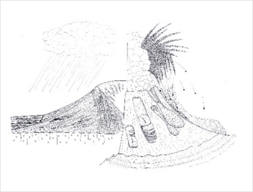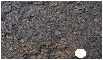 조립질의 화산암편에 세립의 습윤한 화산재가 들러붙어 만들어진 피복화산력