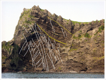 그림 2. 성산일출봉 형성 당시의 해수면의 위치를 보여주는 노두의 스케치