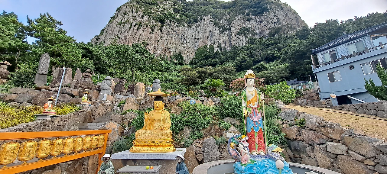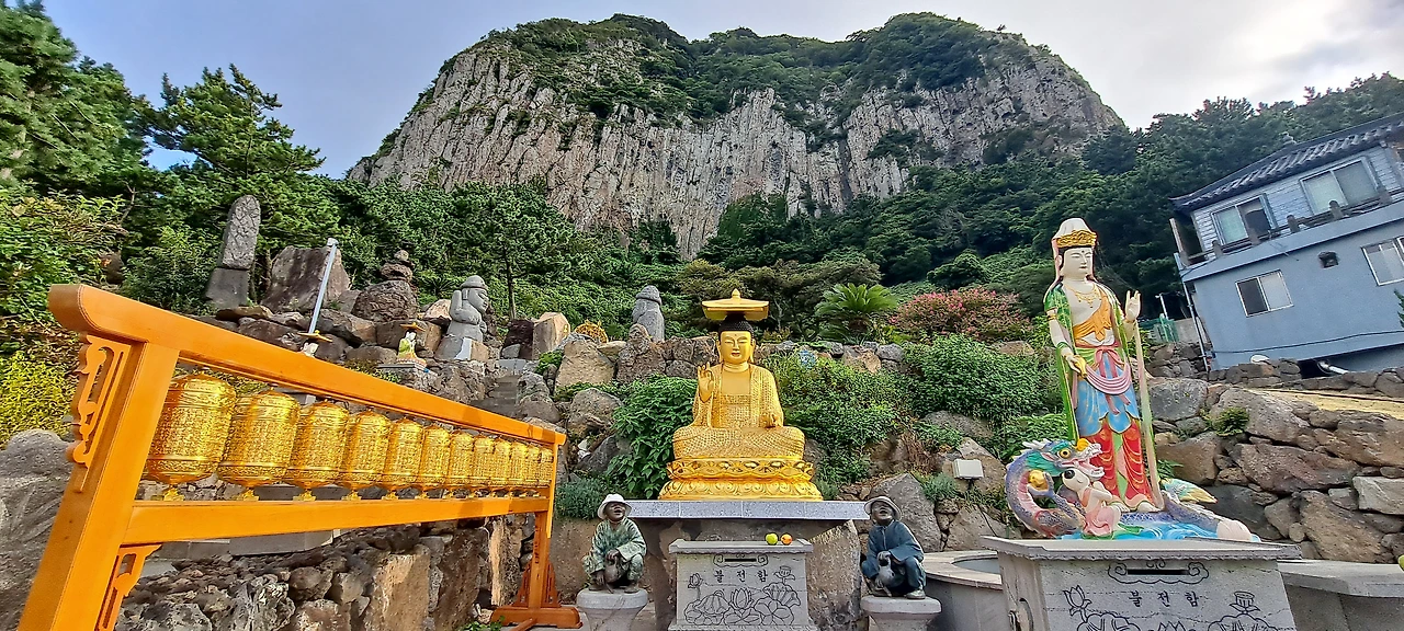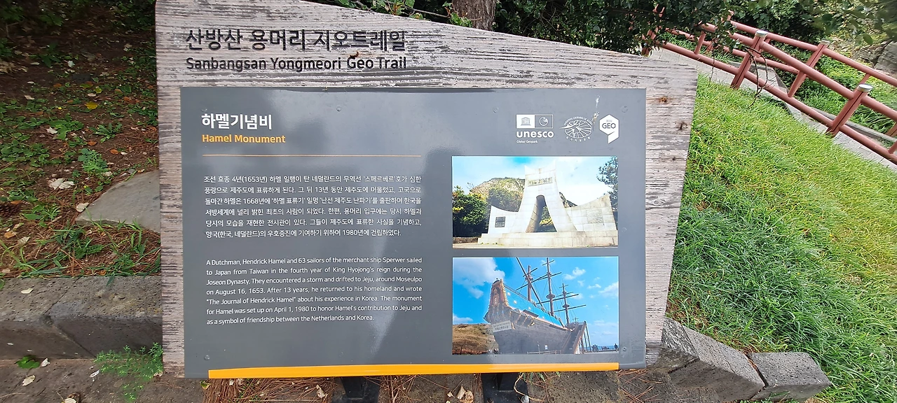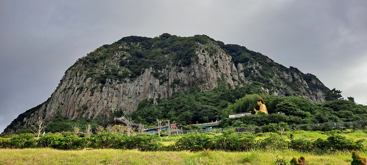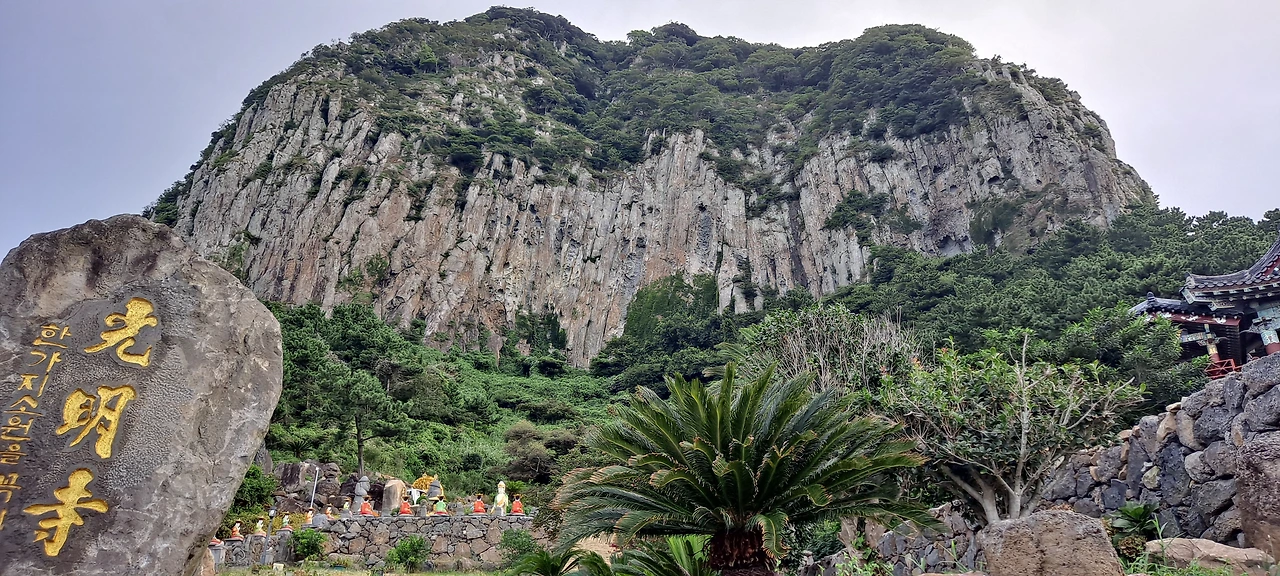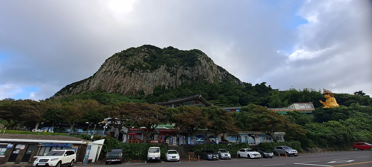 제주도에서 가장 오래 사신 어른이 바로 용머리 해안이다. 용머리 삼 형제가 한 몸처럼 보인다. 그 삼 형제의 후손이 바로 산방산이다. 종 모양의 조면암질 용암돔 산방산이다. 이렇게 사형제가 바로 제주도에서 가장 나이가 많은 어른들이라고 한다.