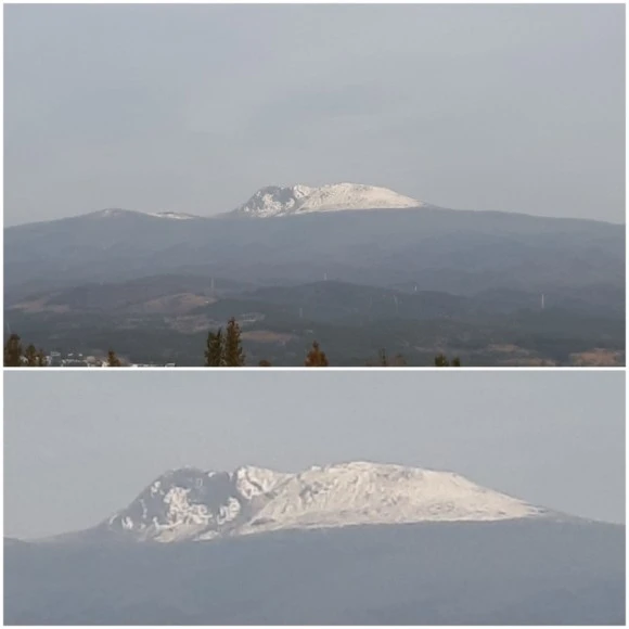 한라산은 산방산보다 훨씬 뒤에 태어났다. 한라산 꼭대기도 처음에는 산방산처럼 조면암질의 돔형 화산이었다. 그러니까 꼭 산방산처럼 생겼었다. 나중에 그 자리에서 아니, 그 바로 옆에서 화산 폭발이 한 번 더 있었다. 이번에는 현무암질 용암이 분출하여 분화구가 만들어졌다. 그러니까 서쪽은 조면암질이고 동쪽은 현무암질이다. 자세히 보면 알 수 있다. 지금도 물이 고이는 부분은 동쪽이고, 서쪽이 좀 높고 동쪽이 좀 낮다. 나도 그렇다. 자세히 보면 왼쪽과 오른쪽이 좀 다르다. 나는 꼭 백록담을 닮았다.