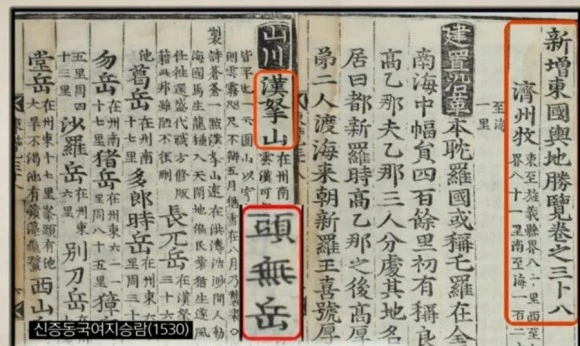 한라산이 " 모두악(頭無岳): 모두오름"으로 표기되어 있습니다.