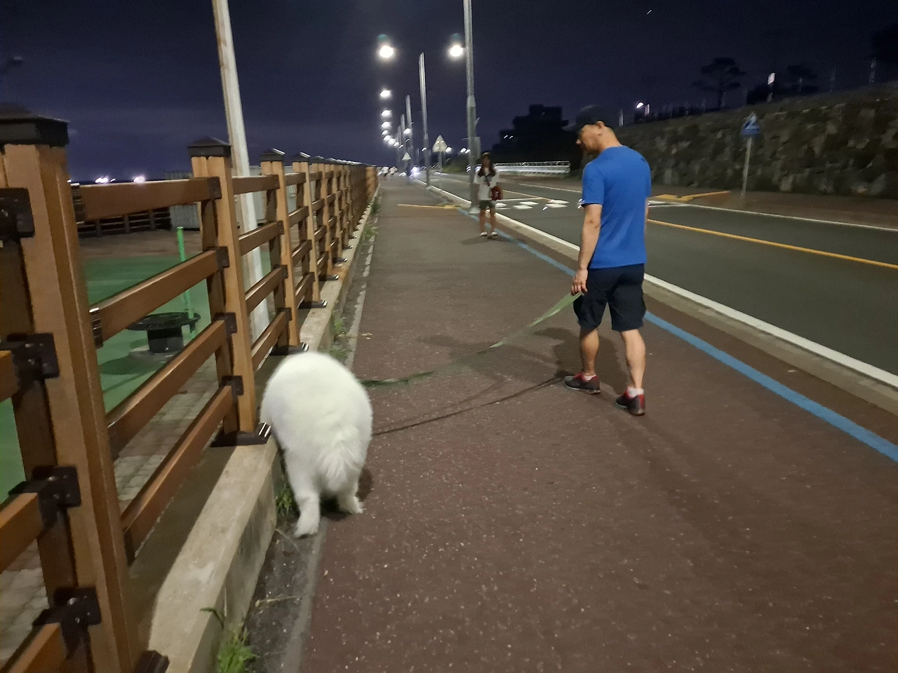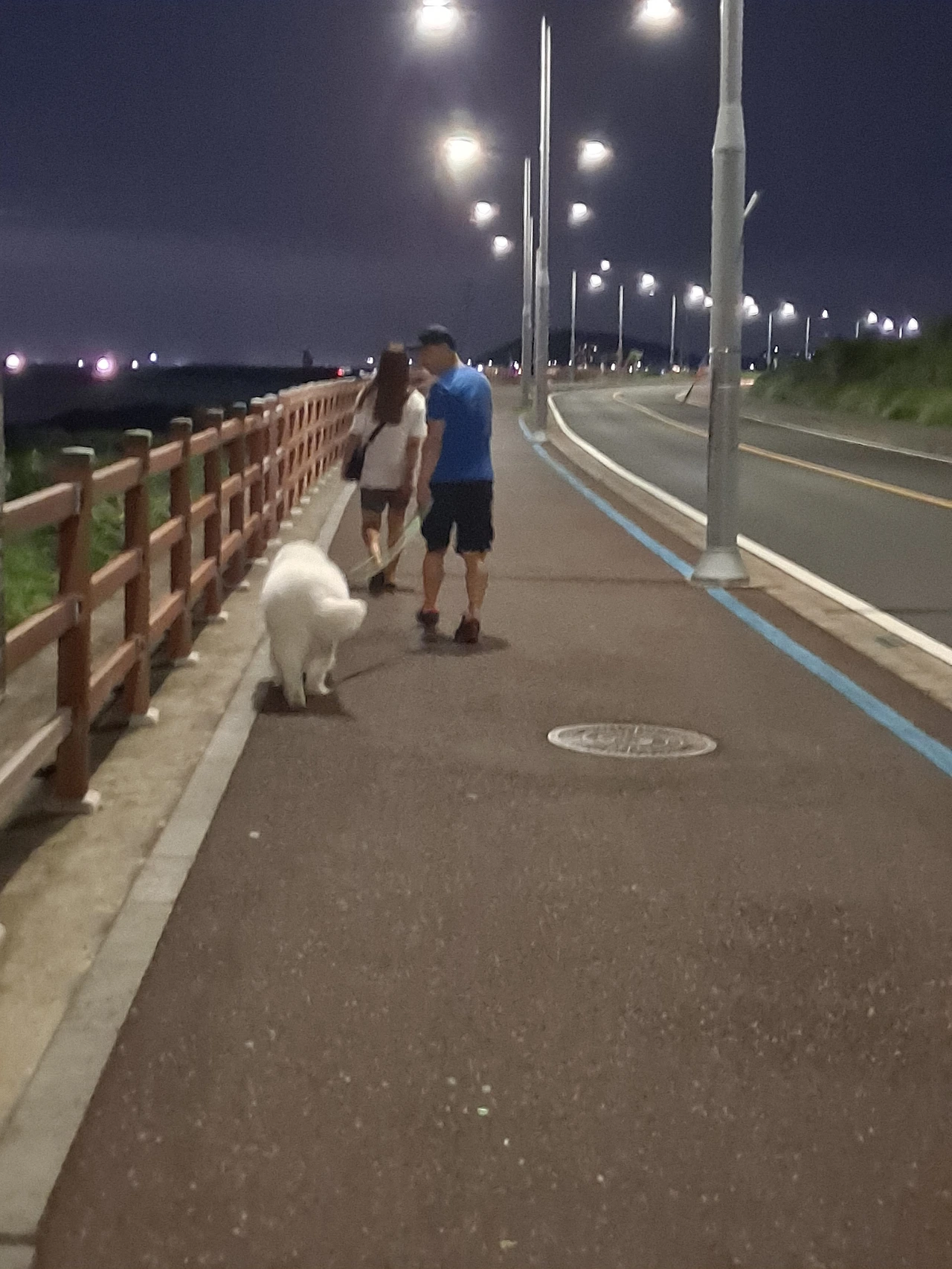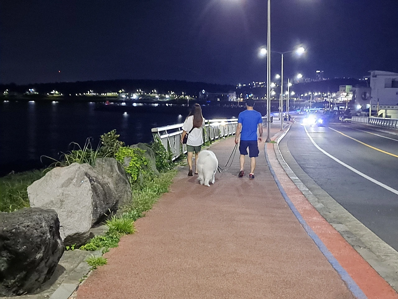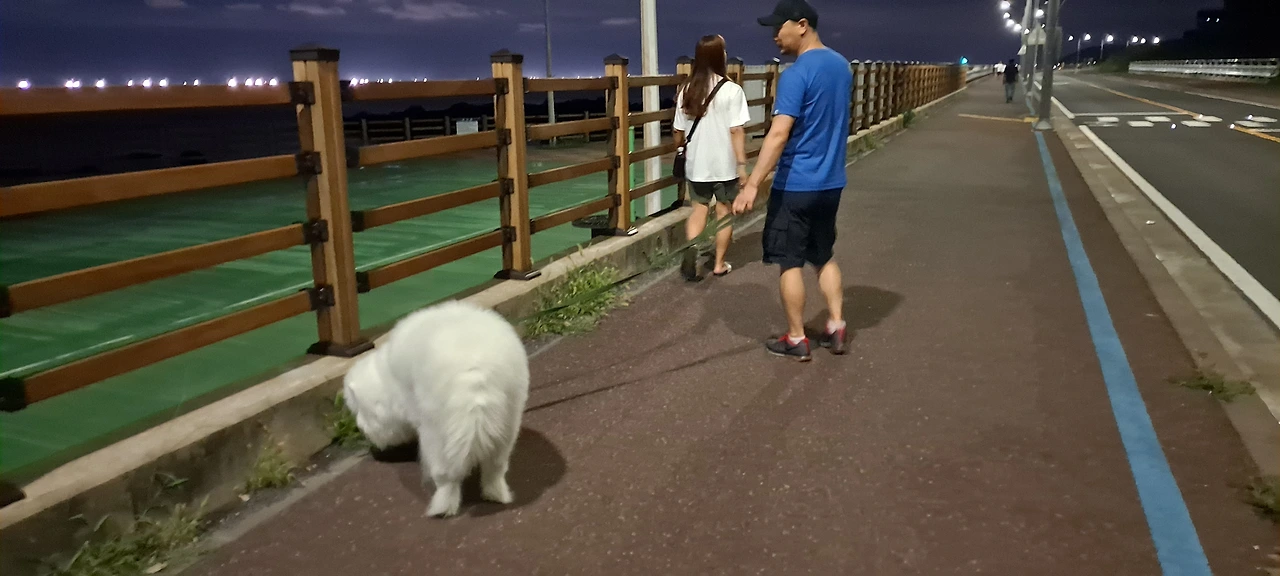 내도 알작지 산책길에 뒤뚱뒤뚱 흰 곰 한 마리