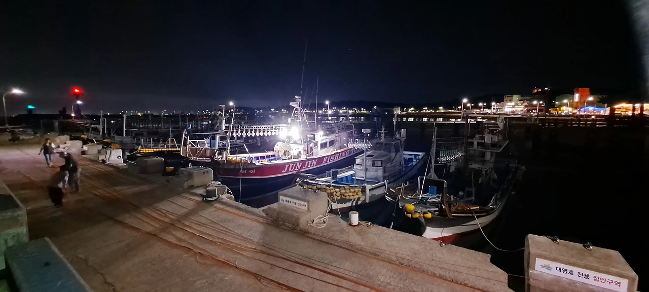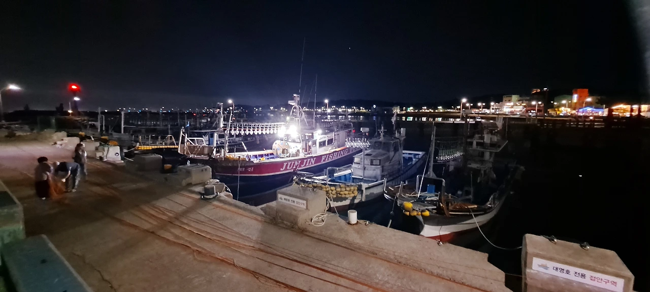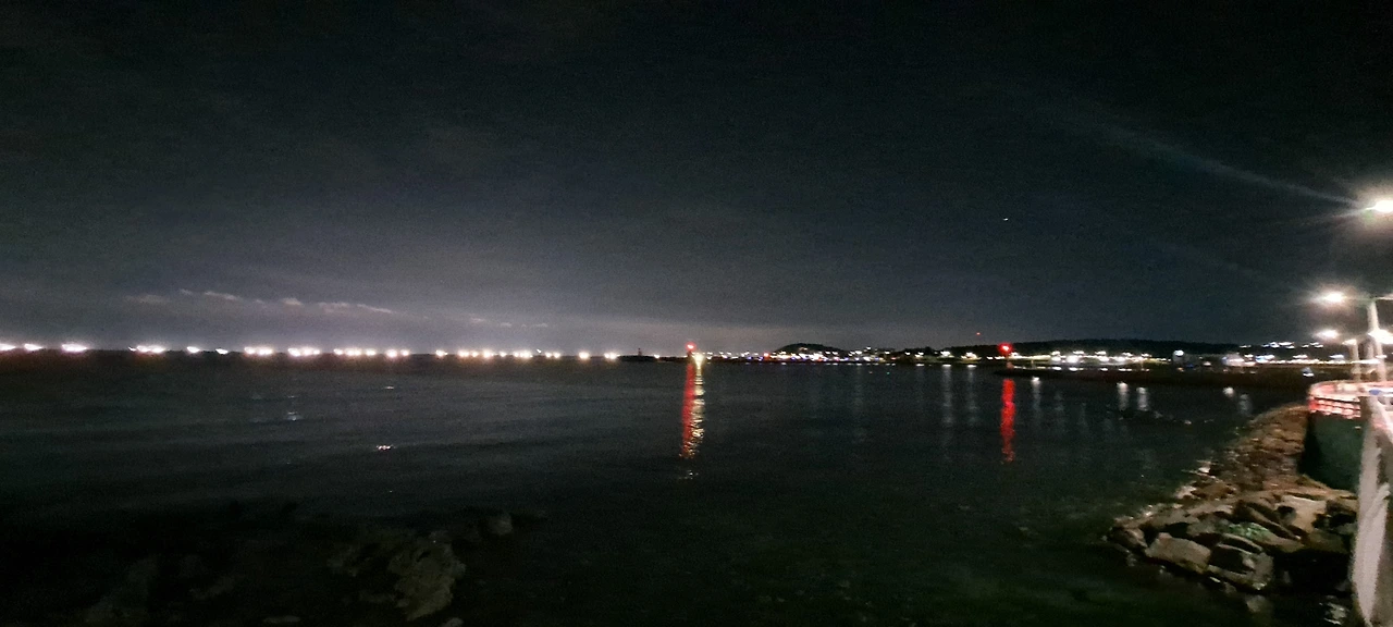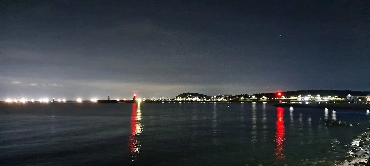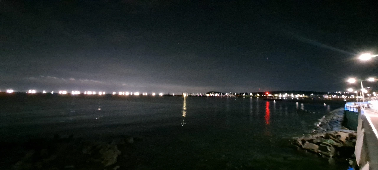 방파제 보안등 불빛과 함께 바다새 소리를 적는다