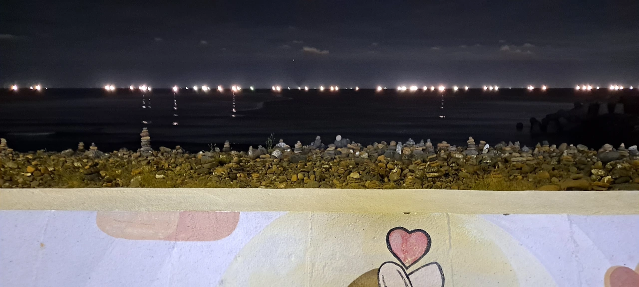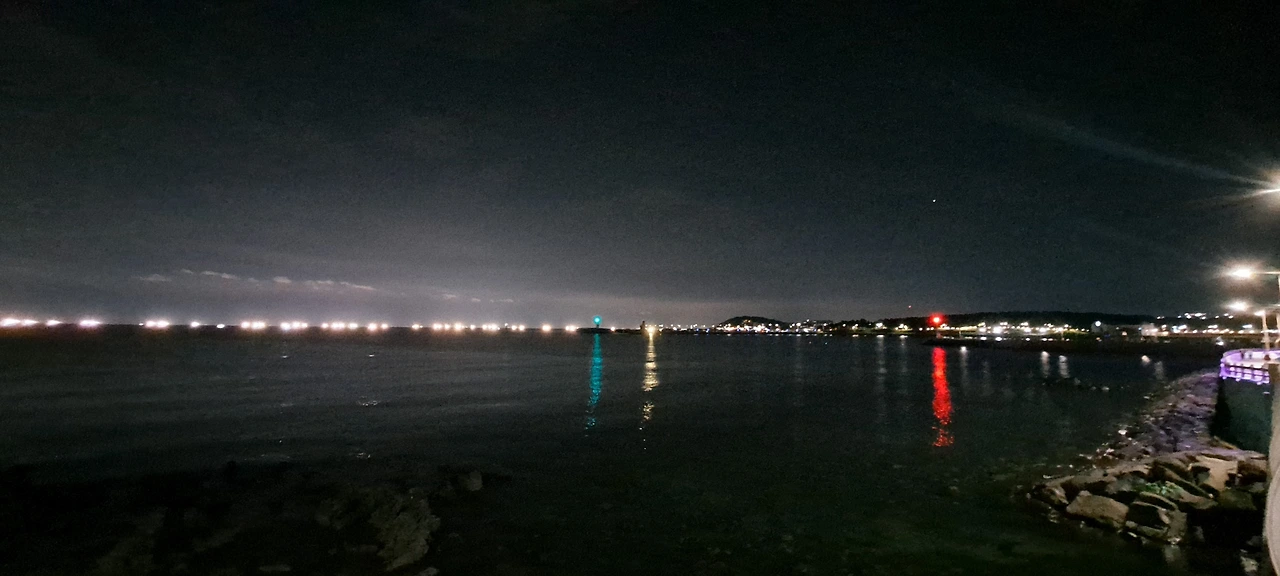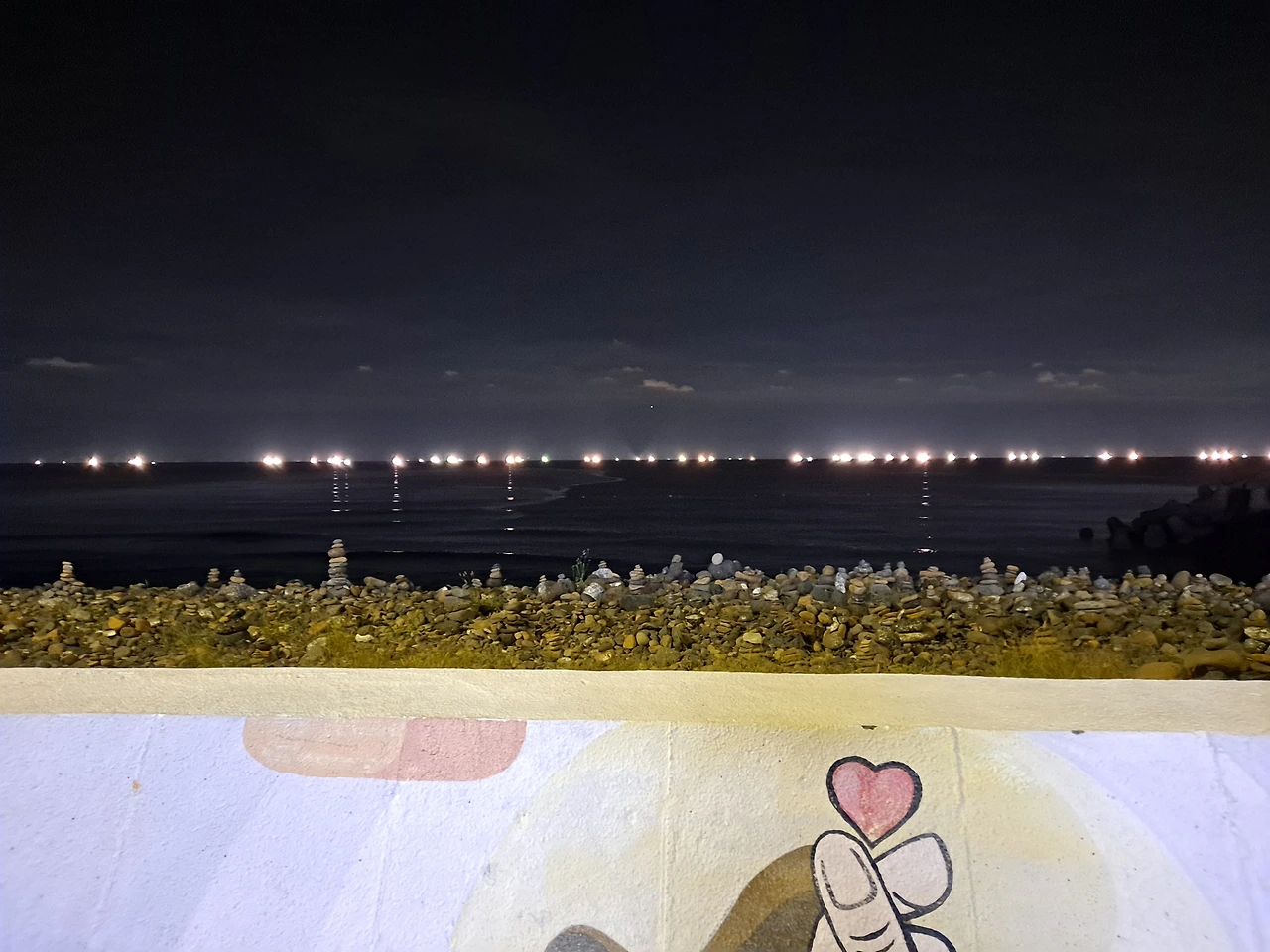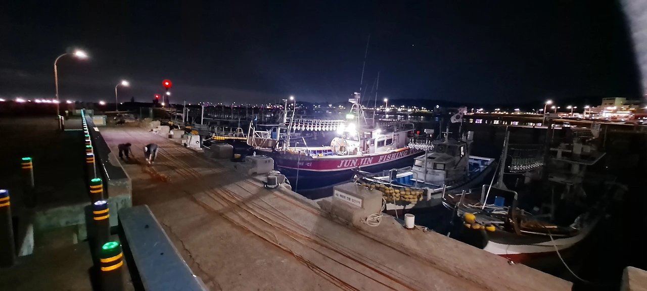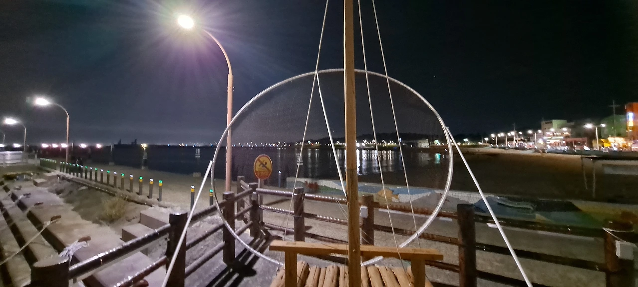 방파제 보안등 불빛과 함께 바다새 소리를 적는다