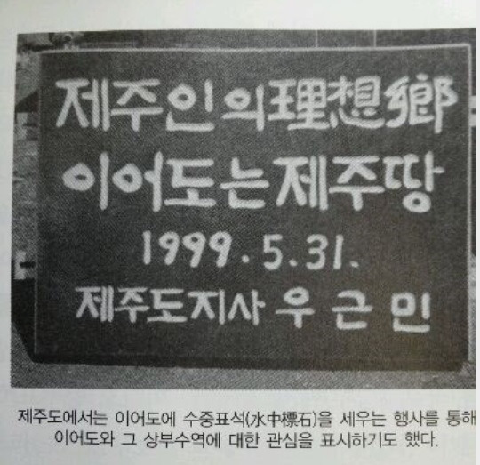 1938년 일본이 해저전선 중계시설과 등대시설을 설치할 목적으로 직경 15미터, 수면 위로 35미터에 달하는 콘크리트 인공 구조물을 설치할 계획이었으나 태평양 전쟁의 발발로 무산되고 말았다. 우리나라에서 이어도의 실재론이 처음 대두된 것은 1951년으로, 국토규명사업을 벌이던 한국산악회와 해군이 공동으로 이어도 탐사에 나서 높은 파도 속에서 실체를 드러내 보이는 이어도 정봉을 육안으로 확인하고 ‘이어도’라고 새긴 동판 표지를 수면 아래 암초에 가라앉히고 돌아왔다. 그 후, 1984년 제주대학교-KBS 파랑도 학술탐사 팀이 암초의 소재를 다시 확인한 바 있으며, 1986년에는 수로국(현 국립해양조사원) 조사선에 의해 암초의 수심이 4.6미터로 측량되었다. 이어도 최초의 구조물은 1987년 해운항만청에서 설치한 이어도 등부표(선박항해에 위험한 곳임을 알리는 무인등대와 같은 역할을 하는 항로표지 부표)로써 그 당시 이 사실을 국제적으로 공표하였다.