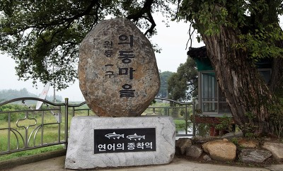 연어의 종착역 표지석이 있다