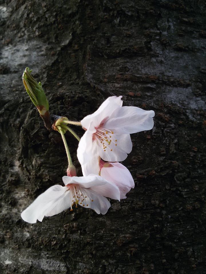 뿌리 없는 벚나무에서 피어나는 허약한 꽃이