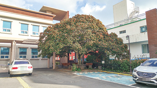 이중섭박물관 인근 자치경찰대 마당 남쪽 구석에는 마치 거대한 우산을 펼쳐놓은 것 같은 자태를 뽐내는 나무가 있다. 먼나무인데, 다른 나무의 방해 없이 독립수로 자라기 때문에 무척이나 화려한 수관을 뽐낸다. 사연을 알고 보면 이 나무도 도민의 아픔과 깊은 연관이 있는데, 위로보다는 고통을 상징하는 나무다. 나무가 자라는 자치경찰단은 일제강점기 서귀면사무가 있던 곳이다. 제주 4·3이 일어나자 이를 진압하기 위해 국군 병력이 제주도로 몰려들었다.