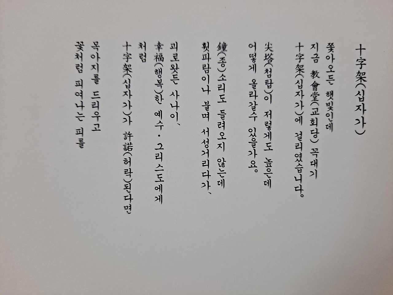 十字架에 걸리였습니다。