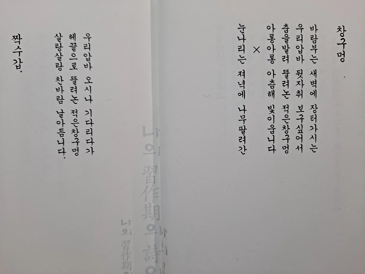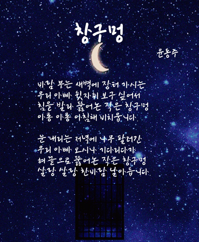 이 시는 1936년에 쓰인 작품으로 화자인 아이가 새벽부터 밤늦게까지 고단하게 일하는 아빠를 그리워하는 모습을 보여준다. 가난한 삶 때문에 그리움을 견뎌야 하는 아이가 뚫어놓은 창구멍을 통해서 식민 치하의 갑갑한 현실에서 미약하게나마 희망을 엿보는 시인의 모습을 짐작할 수 있게 한다.