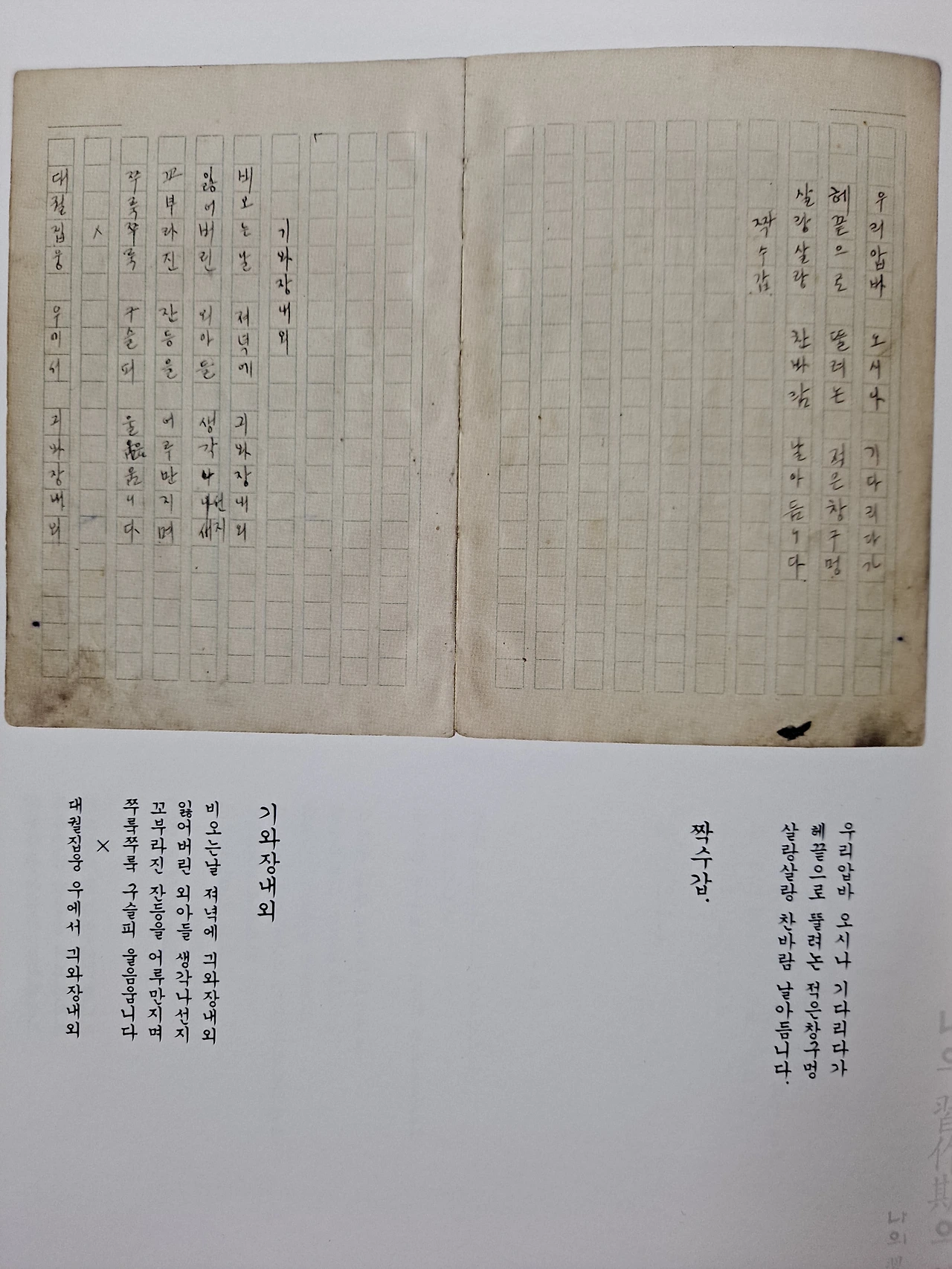 - '기왓장내외' -> '긔와장내외'