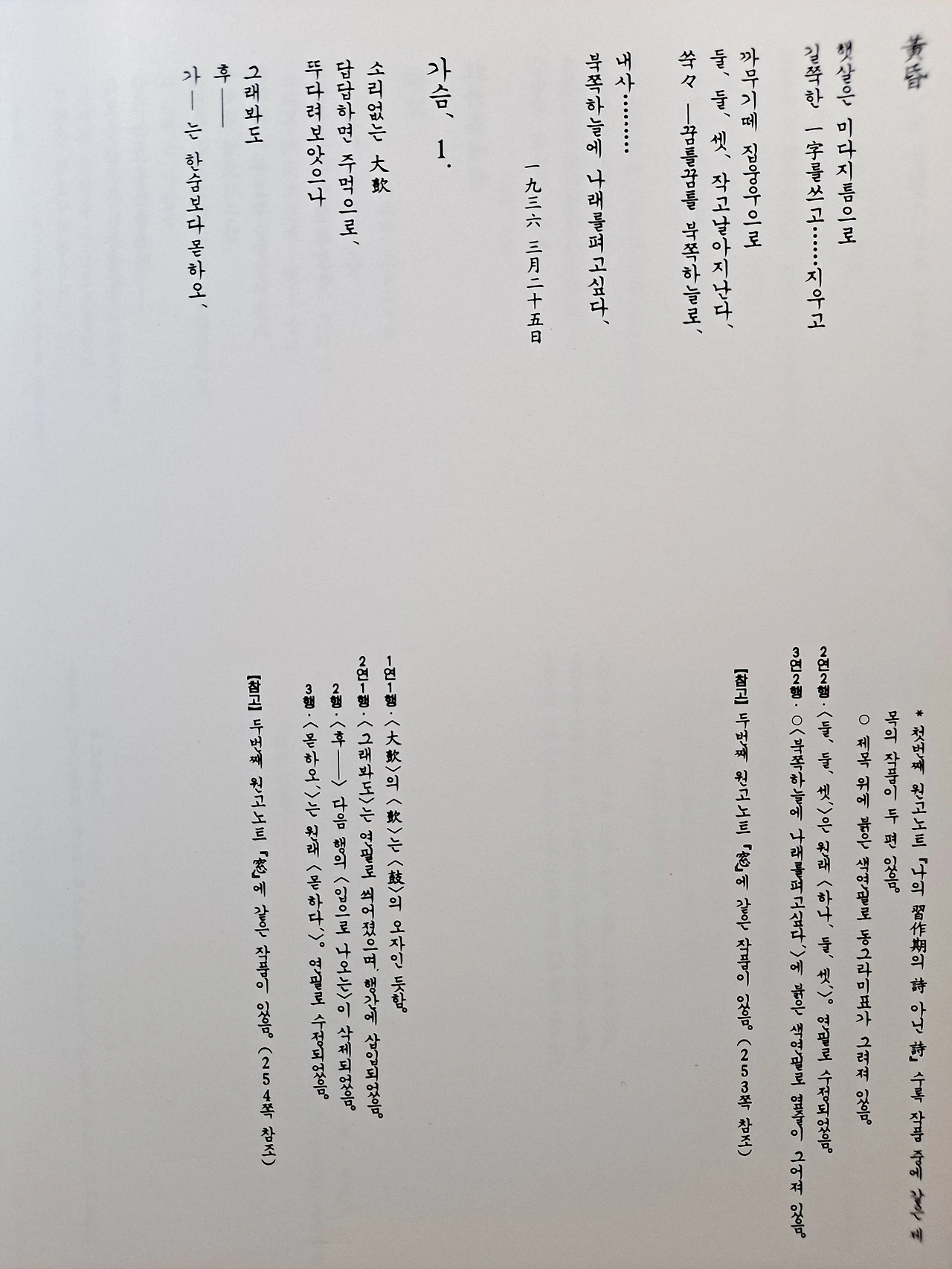 시인은 이 시를 쓴 날인 1936년 3월 25일 <가슴 1>과 <가슴 2>라는 두 편의 시를 더 남긴다.