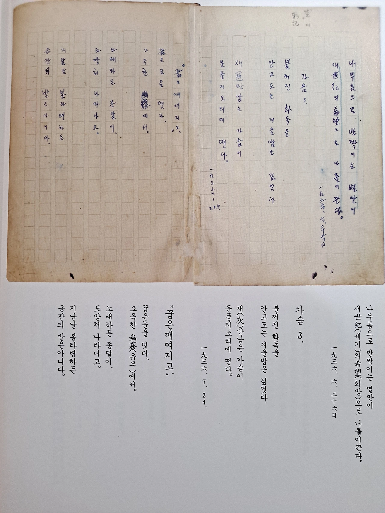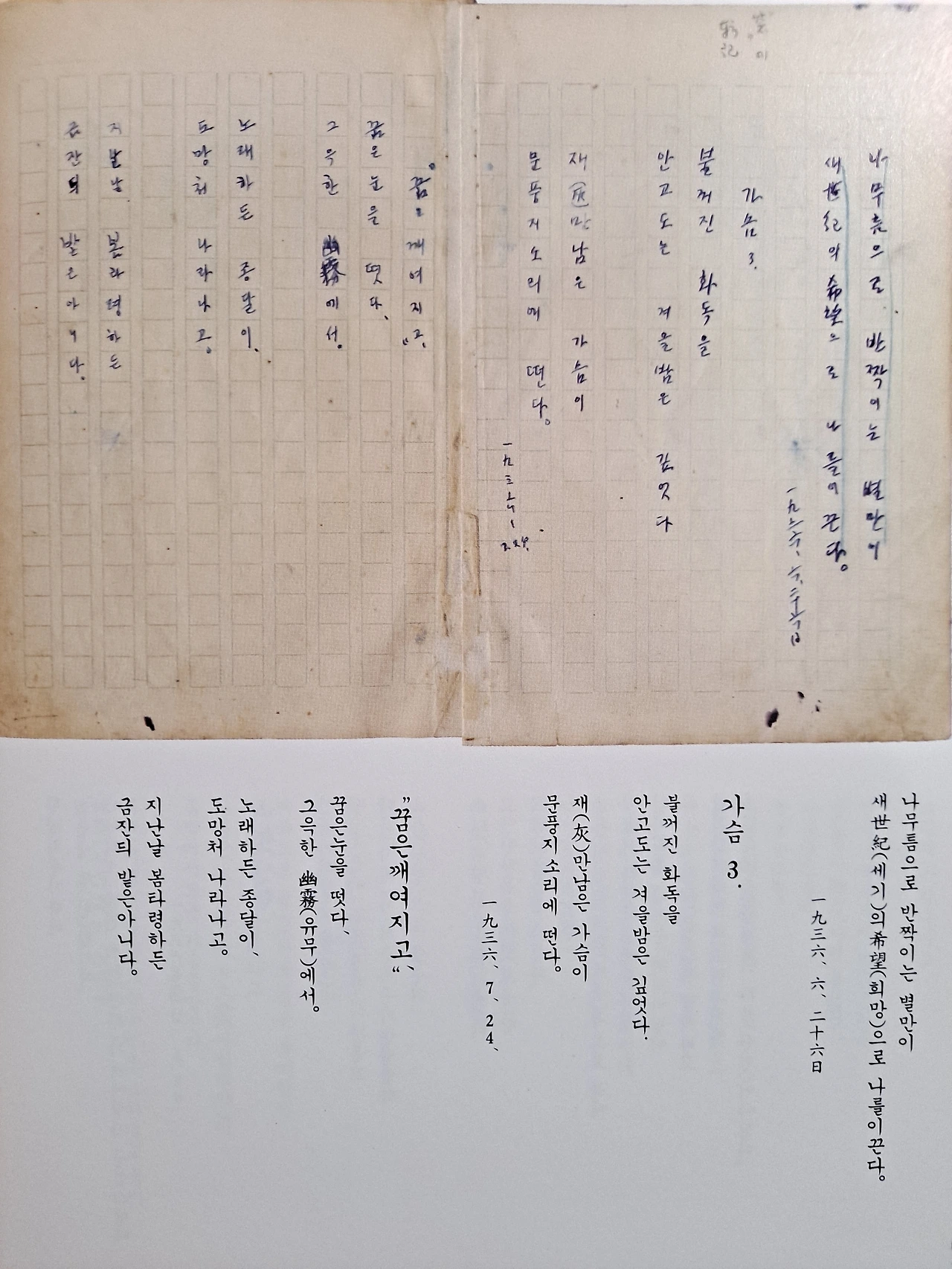 시인은 이 시를 쓴 날인 1936년 3월 25일에 <가슴 1>과 <황혼>이라는 두 편의 시를 더 남겼다.