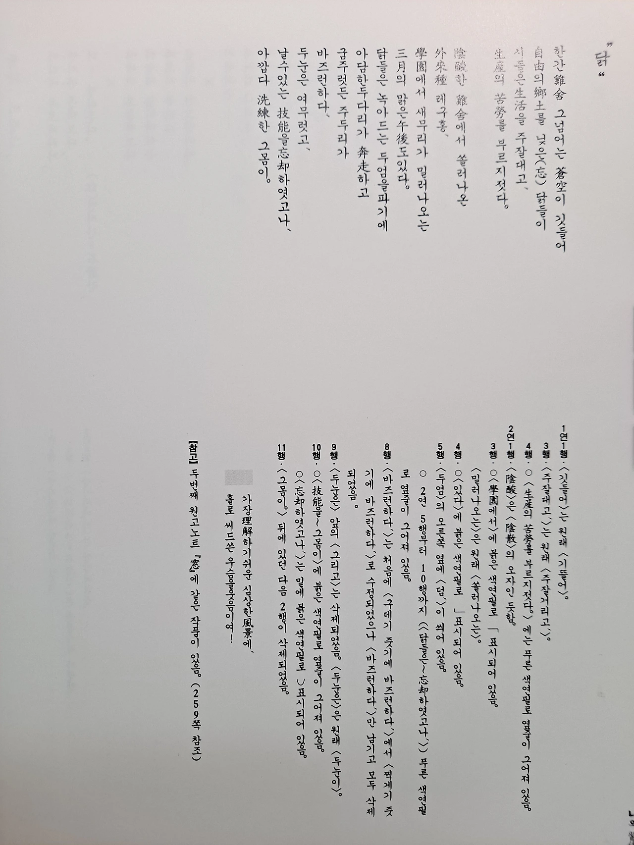 자유(自由)의 향토(鄕土)를 잊은(忘) 닭들이