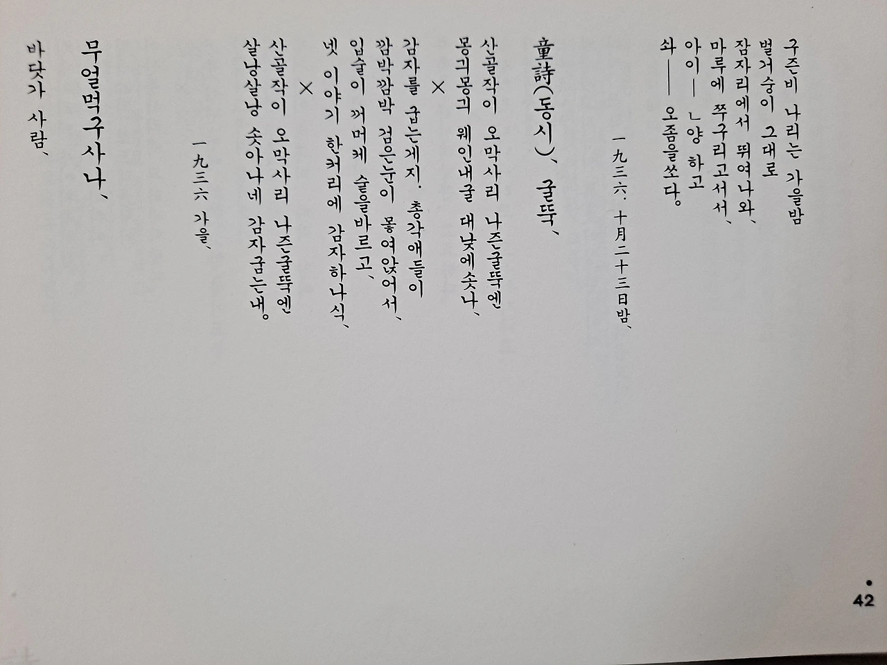 윤동주 시인은 생전에 3권의 시작노트를 남겼다.『나의 습작기(習作期)의 시(詩) 아닌 시(詩)』, 『창(窓)』,『하늘과 바람과 별과 시(詩)』가 그것이다. 그중에서 나는 요즘 첫 번째 시작노트인 『나의 습작기(習作期)의 시(詩) 아닌 시(詩)』부터 다시 읽고 자료수집 차원에서 이 브런치에 올리고 있다.