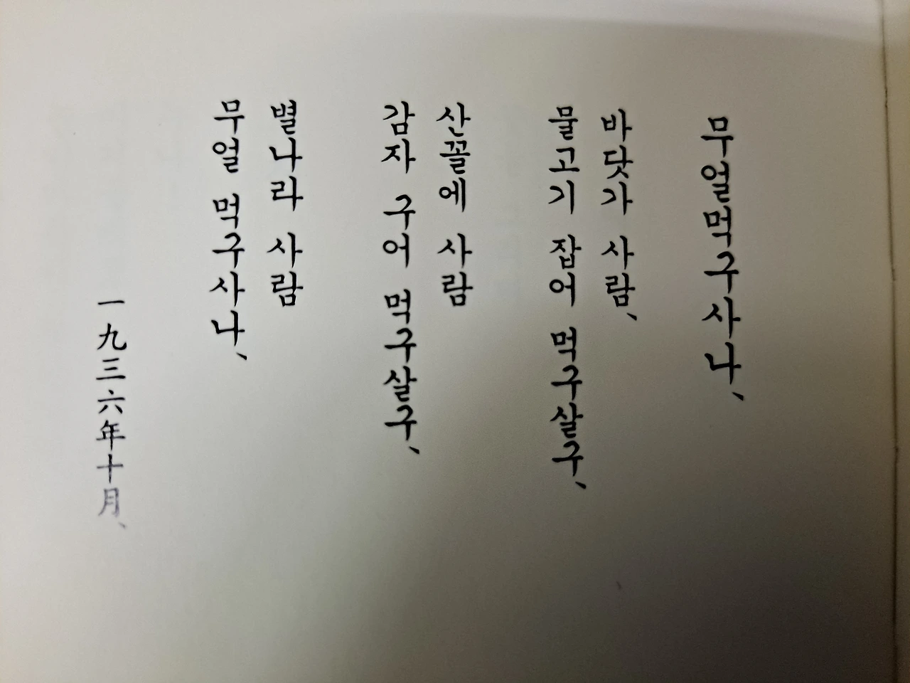 1936년 10월에 쓴 동시로 비슷한 가락으로 늘어놓아 효과를 높이는 대구법의 사용이 돋보이는 작품이다. 오늘날과 비교하여 먹을 것이 많지 않았을 텐데도 불구하고 자신보다는 별나라 사람을 걱정하는 아이의 순수한 동심이 따스하게 전해진다.