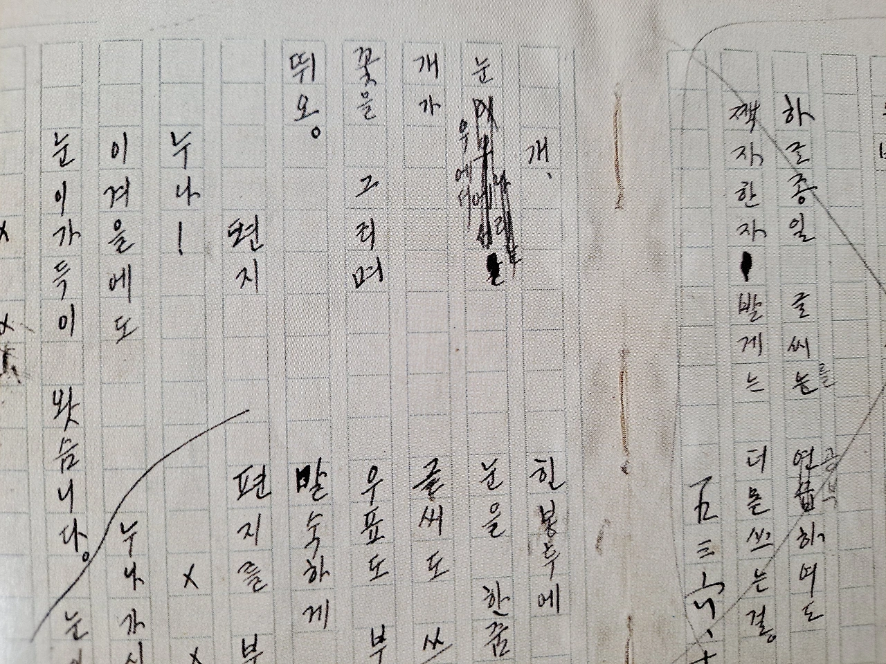 - '눈 위에서' -> '눈 우에서'