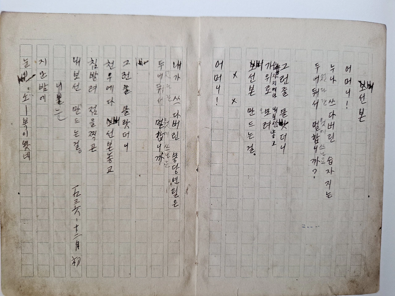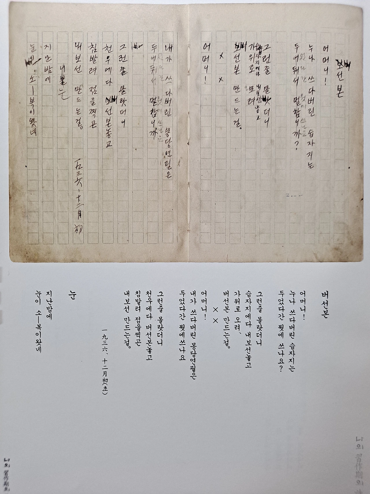 처음에 제목을 <니불>이라 썼다가 <눈>으로 고쳤다.