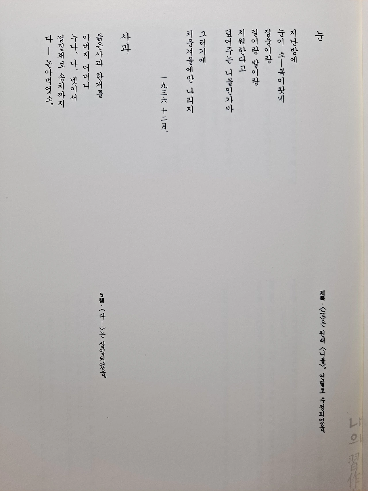 시인이 같은 시기에 쓴 동명의 다른 작품인 <눈>이 있다.