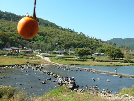 김 선생님의 별장에 도착해 보니 그야말로 농촌풍경이다. 사람이 살지 않음으로 해서 쌓인 먼지를 닦아 내고, 점심준비로 북적대다가 앞산을 바라보니 내 눈길을 끄는 게 있다. 산비탈을 오르고 있는 감나무들. 가을산의 감빛은 내 눈을 유혹한다. 그 유혹을 뿌리치지 못하고 바쁘게 점심 준비하던 손을 놓고 따라나선다. 개울 건너 도착해 보니 손에 잡힐 듯하던 감은 나무 위에 대롱대롱 매달린 채 나 보란 듯이 내려보고 있다. 같이 간 일행들과 합작해서 감나무를 흔들어 대니 서 너 개의 감이 떨어진다. 얼른 주워 한 입 깨물어 보니 많이 떫다. 떫은 감은 입에서 단맛도 많이 났다. 떫으면 어쩌랴! 하고 먹었는데 이게 내 목을 통과하지 않으려 한다. 목이 꽉 메어서 숨을 못 쉴 정도였다. 그때 나무를 흔들던 일행이 홍시도 있다면서 땅에 떨어져 박살 난 감을 내민다. 목이 메어 있던 참이라 얼른 홍시를 받아먹고 메여 있던 목을 쓸어내렸다. 그 자리에서 뱉어 버리지 않고 그걸 미련스럽게 삼키고 말았다. 그래서 그런지 여행길 내내 체한 듯이 속이 더부룩했다. 제주에서는 가위를 사용해서 귤을 따는데 감을 따는 것은 쉽지가 않았다. 온몸을 바쳐 딴 감은 열 개 정도는 됐다. 집에서 부지런히 식사준비 하는 이들을 위해서 누구의 감 밭 인지도 모르고 서리해 왔는데 김 선생님과 배 선생님은 그 감은 떫어서 못 먹는단다. 곶감은 만들어서 먹든가 아니면 가만히 두었다가 홍시가 돼서 먹으면 겁나게 맛 난단다.