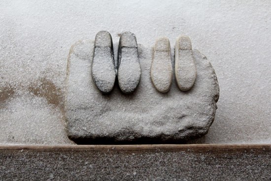 마을에 도착하니 회관 지붕은 아직 리모델링 공사가 안 끝났고, 내부 시설은 다 끝났는지 현관에 신발들이 가지런히 놓여 있다.