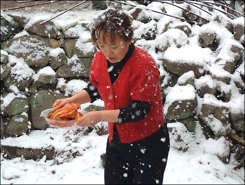 "가애 엄마! 이왕이먼 귤도 좀 사가세. 오랫동안 눈 속에 갇혀 있응게 얼매나 과일이 묵고잡겄는가. 귤 한 박스만 사가세!"