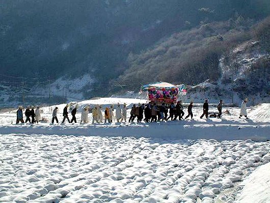 "고향 사람들에게 찬거리나 좀 사다 드릴라고 허고만. 눈이 몽땅 니리서 어디 장에나 한번 갔겄는가."