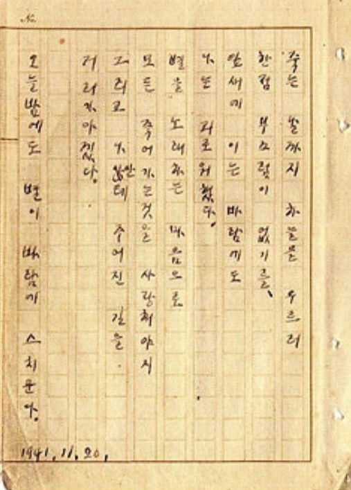 _ (1941. 11. 20. 윤동주 25세)