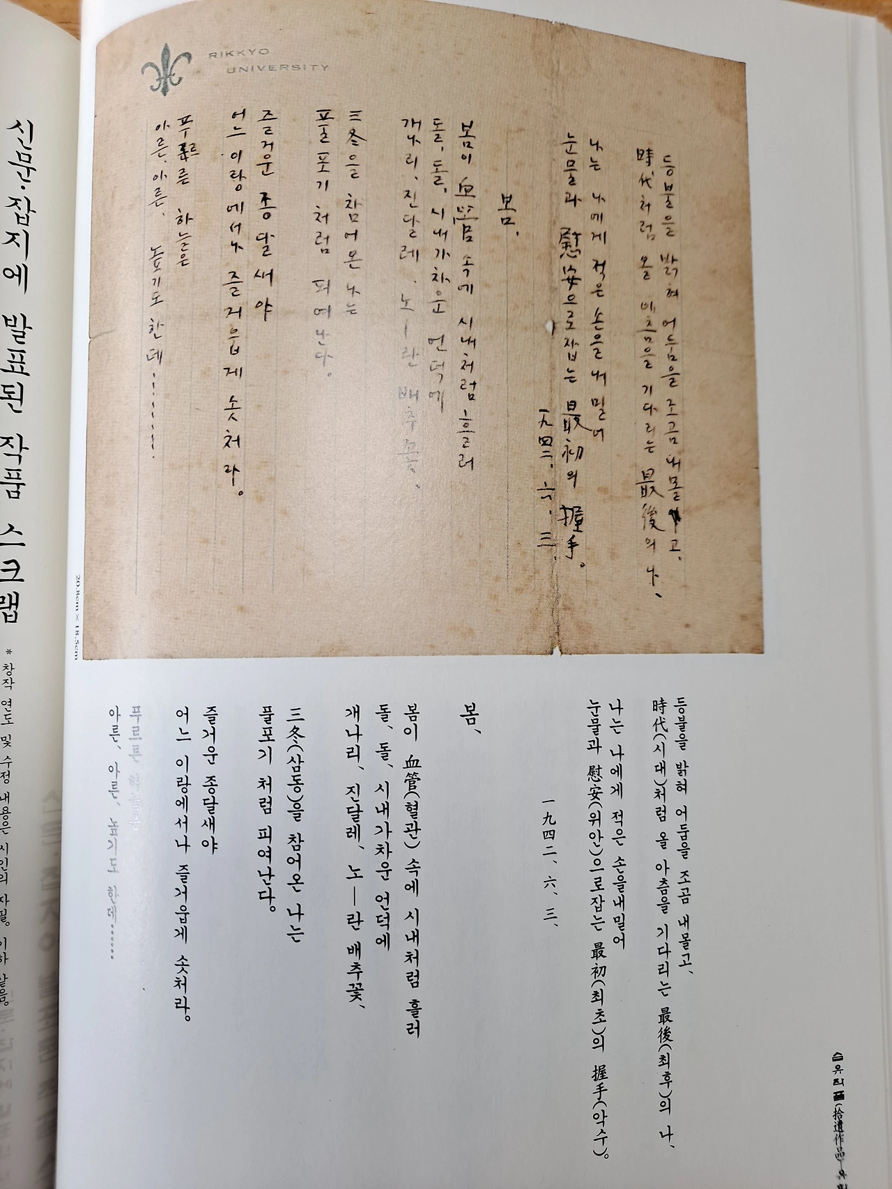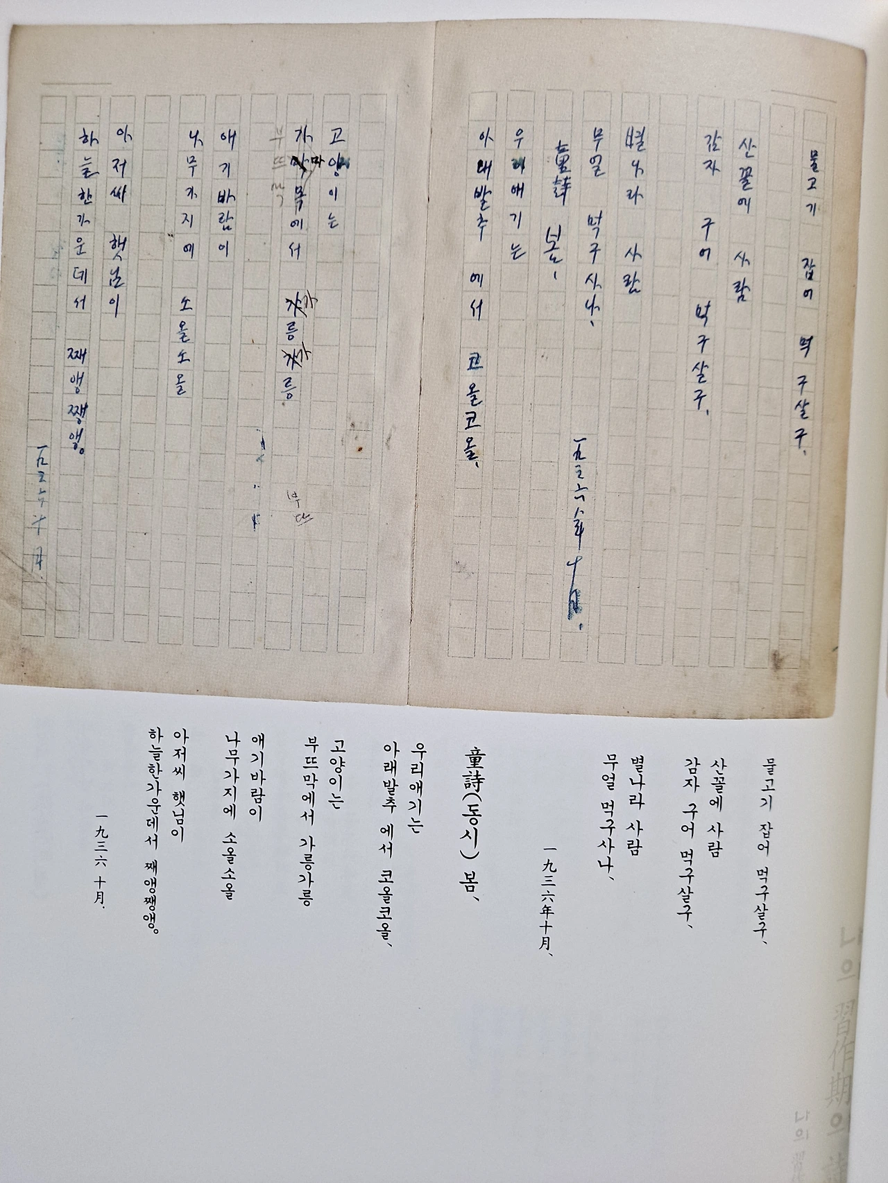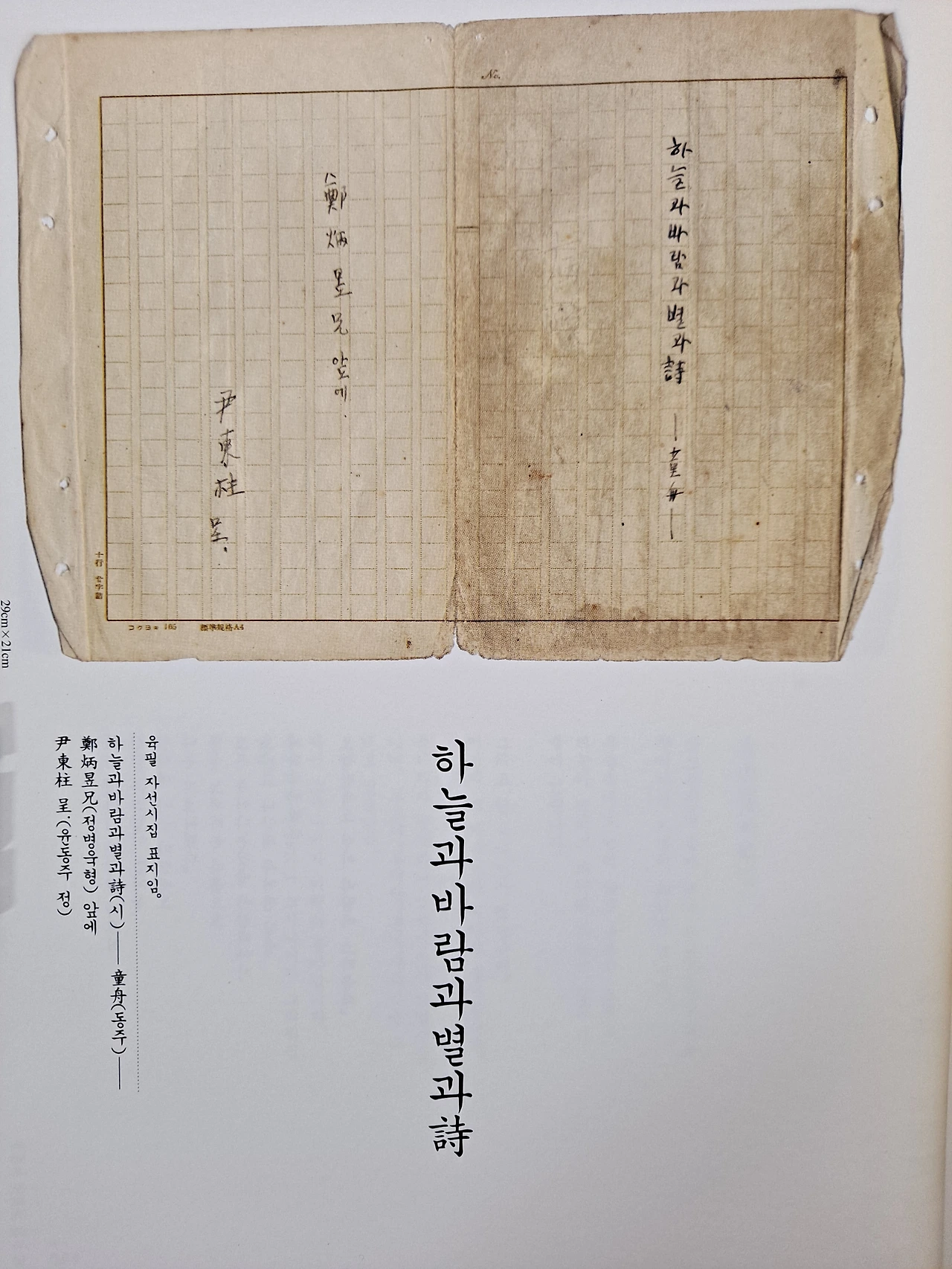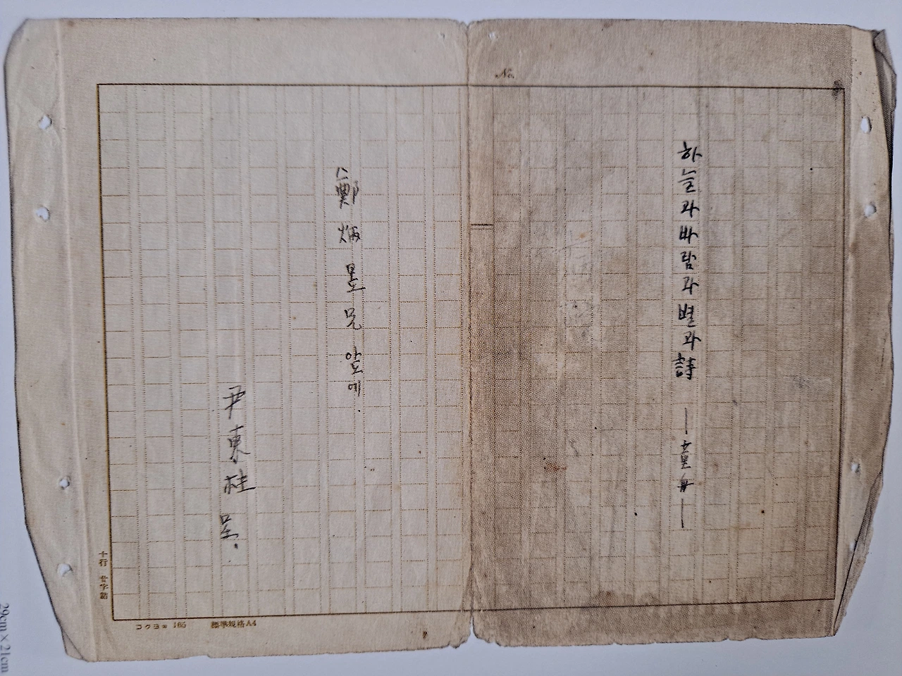 윤동주 시인은 습작노트 2권과 자선 시고집 1권을 남겼다 윤동주는 송몽규가 신춘문예에 당선된 무렵부터 날짜를 명기해 가며 습작품을 보관했다