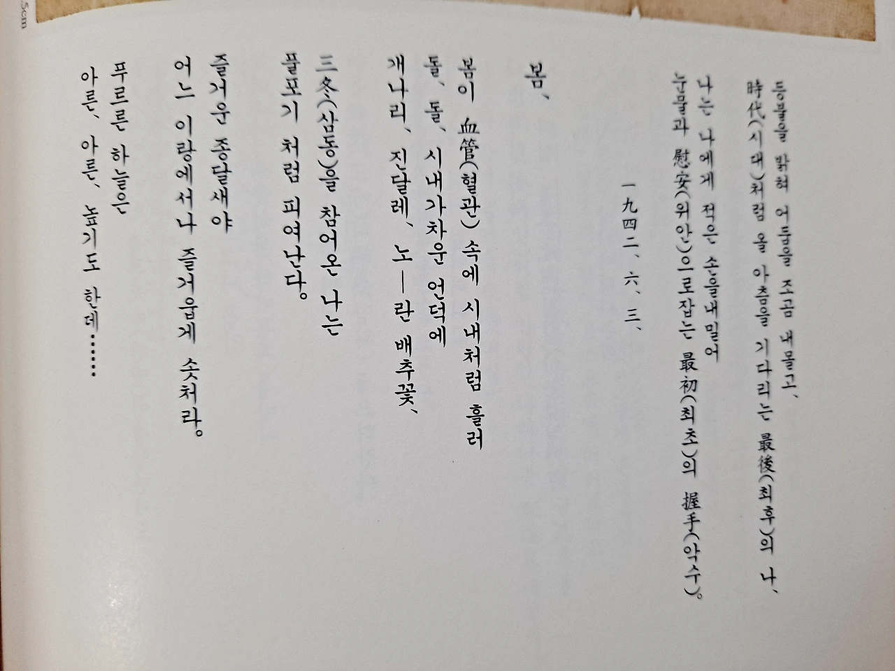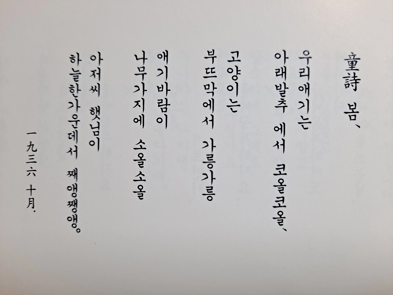 선물을 받았다. 야간근무 마치고 돌아오니, 윤동주 시인이 기다리고 있다. 아들이 모셔온 시인이 집에서 기다리고 있다. 앞으로 나의 잠은 없을 듯, 윤동주 시인과 깊은 대화를 시작한다. 우리들의 아름답고 의미 있는 따뜻한 봄은 올 수 있을까? 이제 막 다시 겨울이 시작되었는데, 우리들의 봄은 언제쯤 올 수 있을까. 『(사진판) 윤동주 자필 시고 전집』이 책상에서 봄으로 피어나 있다. 이 책은 집필 순서로 만들어져 있다. 하지만 나는 대강 훑어보고 거꾸로 읽기 시작한다. 나는 이미 다른 정본 전집에서 순서대로 작품을 읽은 뒤라서, 이번에는 거꾸로 읽는다.