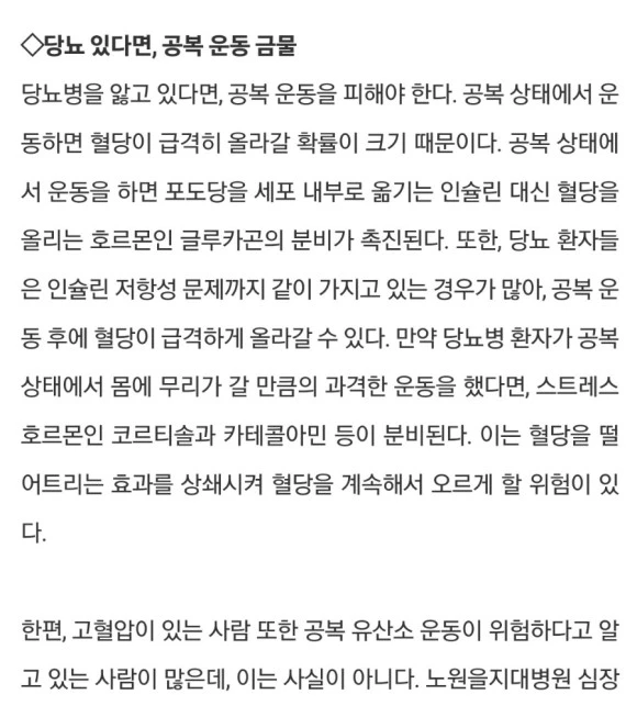 당뇨병 환자는 공복중 운동을 하면 안 된다고 한다.