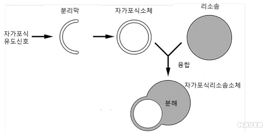 자가포식(autophagy)은 그리스어로 스스로 (auto), 먹는다 (phagy)는 뜻의 단어가 합쳐진 말이다. 세포 내부의 물질이 세포 스스로에 의해 제거되기 때문에 붙여진 이름이다. 세포질의 노폐물, 퇴행성 단백질이나 수명이 다하거나 변성되어 기능이 저하된 세포소기관 (organelle)들이 자가포식에 의해 제거된다. 제거 대상 단백질/세포소기관은 세포 안에서 이중 막 (double membrane)으로 된 자가포식소체 (autophagosome)라고 불리는 소포 (vesicle) 내에 격리되고, 이 소포는 다시 리소좀 (lysosome)과 결합하여 자가포식리소좀 (autophagolysosome)을 형성하고 그 안에서 리소좀 효소에 의해 분해가 일어난다 (그림 1). 이렇게 분해된 물질들은 세포의 생존에 필요한 에너지를 만들거나 새로운 세포소기관을 생성하는 데에 이용된다. 즉, 자가포식이란 세포 안에서 이루어지는 재활용 시스템이라고 할 수 있다. 재활용을 위한 지나친 세포 물질 제거는 결국 세포의 사멸을 초래할 수 있기 때문에 자가포식이 세포사멸을 유도할 수도 있다고 생각되어 제2형 세포예정사 (programmed cell death)로도 불리기도 한다 (참고로 제1형 세포계획사는 세포자연사 즉 apoptosis이다). 그렇지만 실제로 자가포식 그 자체가 세포 사멸을 유도할 수 있는지는 아직 확실하지 않으며, 죽어가는 세포의 방어기전으로 자가포식이 나타날 수 있기 때문에 자가포식에 의한 세포 사멸 (cell death due to autophagy)과 자가포식이 동반된 세포 사멸 (cell death associated with autophagy)을 구분해야 한다는 의견이 있다. 실제로 대부분의 경우 자가 포식은 세포 자신에게 에너지와 대사물질을 제공해 줄 수 있는 작용이라는 점에서 세포사멸과는 반대로 세포의 생존에 기여한다.