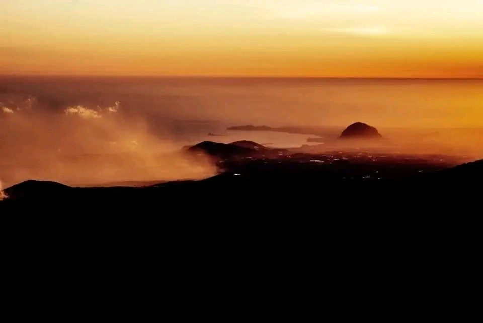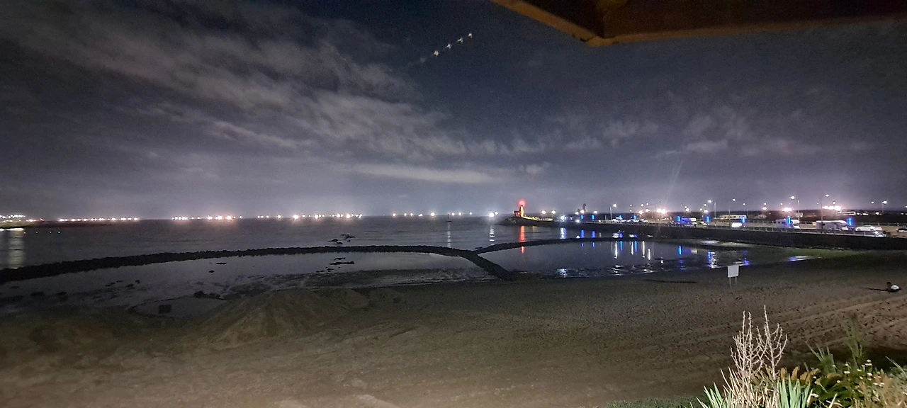 수평선 위에서 고기를 낚고 있는 불빛들과