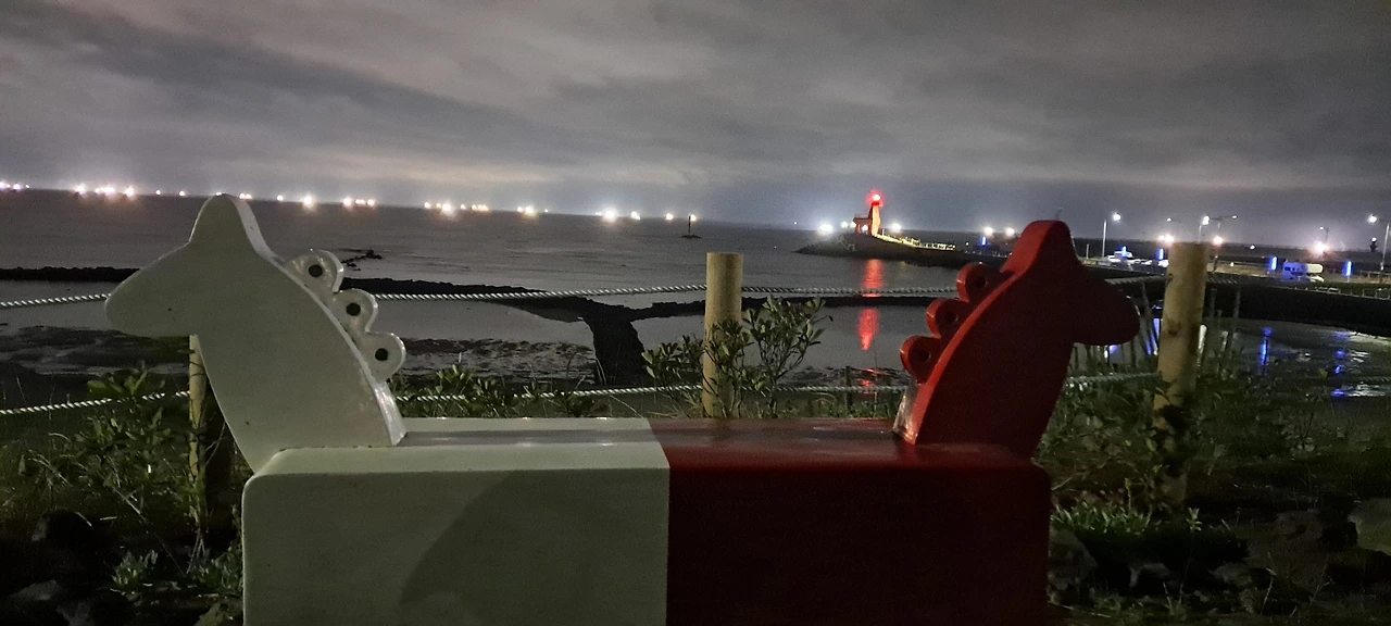 조랑말 의자에 앉아 조랑말 등대를 본다