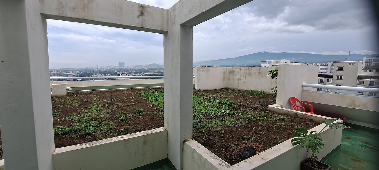 옥상에 올라가 빙 한 바퀴 둘러본다. 구름과 함께 살아가는 한라산과 하늘과 앞바다를 보면 어쩐지 길이 보일 것만 같다. 가볍게 몸을 풀고 길을 나선다. 요즘에는 옥상 텃밭을 가꾸지 못한다. 방수공사를 위해서 옥상의 흙과 돌들을 다 치우기로 하였다. 얼마 전에 아파트 사람들이 모두 모여서 작물과 풀을 다 제거했는데 다시 풀이 자라고 작물이 자라고 꽃이 자라나기 시작했다. 방수공사는 아마도 장마가 끝나면 할 모양이다. 흙 속에는 많은 씨앗들이 숨어있다. 적당한 물과 적당한 온도만 있으면 언제든지 새싹이 돋아난다. 우리들의 마음속에도 수많은 풀과 수많은 꽃과 수많은 작물들의 씨앗이 숨어 있을 것이다. 적당한 물과 적당한 온도와 적당한 관심과 적당한 햇빛만 있으면 언제라도 사랑의 새싹이 돋아날 것이다.