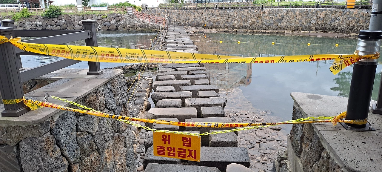 여름이면 월대천에도 수상 안전 요원들이 배치된다. 다른 해수욕장들보다 일거리가 없다. 월대천에서 물놀이하는 사람들이 많지 않기 때문이다. 오늘은 아예 물속에 들어가지 못하도록 막아버렸다. 징검다리도 건너지 못하도록 입구를 완전히 막아버렸다. 작년의 장마철 트라우마 때문에 올해는 과잉반응을 보인다는 느낌이 들기도 한다. 오늘의 월대천은 물도 맑고 수위도 낮아서 물놀이 허용을 해도 안전할 것 같은데 윤석열 대통령의 한 줄짜리 지시사항 공문 때문에 오버하고 있다는 생각이 들기도 한다. 작년 이맘때의 장마에 떠내려간 채해병이 어쩌면 이 정권의 거짓을 붙잡고 벗겨버릴 수도 있지 않을까, 그런 생각이 들기도 한다.