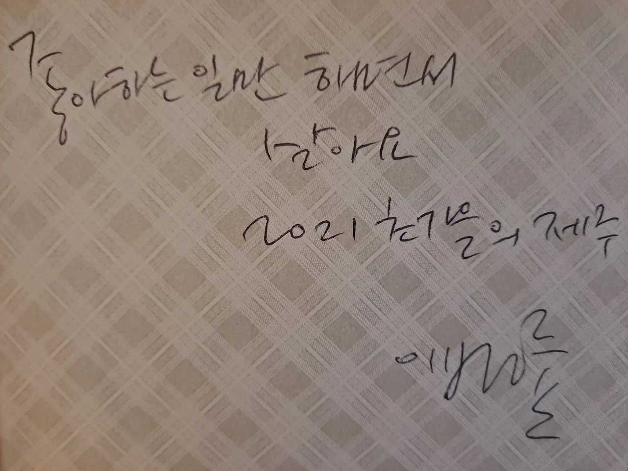 사람마다 조금씩 다른 건데 규격화하고 어떻게 해야 하고 너무 닭살스러운 건 안되고 너무 올드한 건 안 되고. 어제 북토크 때 대구를 갔다 왔는데 어떤 분이 “옛날에 쓰신 글을 이번에 출판한 것 같다”며 “지금 나이의 감성으로 쓴 것 같지 않다”라고 말씀하시더라고요. 어떻게 대답을 해줘야 할까 고민하다 한 마디 했습니다.