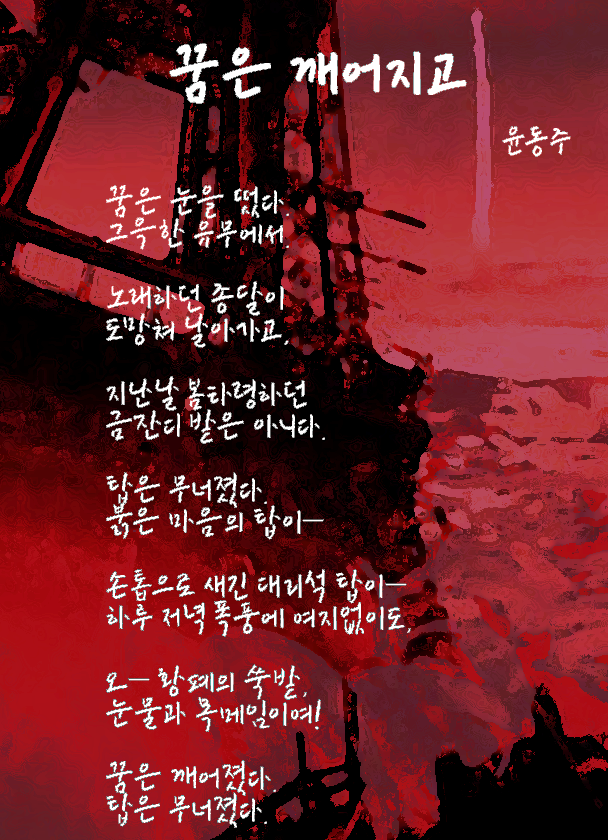 언제나 현실은 괴로운 법, 차라리 꿈을 헤매는 것이 훨씬 더 행복하다. 꿈에서 깨어나 보니 종달새는 달아나고, 탑은 무너지고, 금잔디도 쑥밭이 되어버린 허무의 질곡만이 가로놓여 있다. 깨어진 꿈, 무너진 탑,... , 어디다 이상의 푯대를 세울 곳도 없다. 처참하게 현실 의식만이 피멍 들게 널브러져 있다. 나라를 빼앗긴 백성, 전체의 선이 무너진 자리, 가혹하게 짓밟힌 이 시대의 윤리와 역사적인 희생물로서의 개인이 숨 쉬기엔 너무나도 산소량이 부족한 시기의 좌절감이 잘 드러나있다. 완전히 절망할 줄 알아야만이 희망의 새 순에 닿을 수 있는 시대 상황이었다.