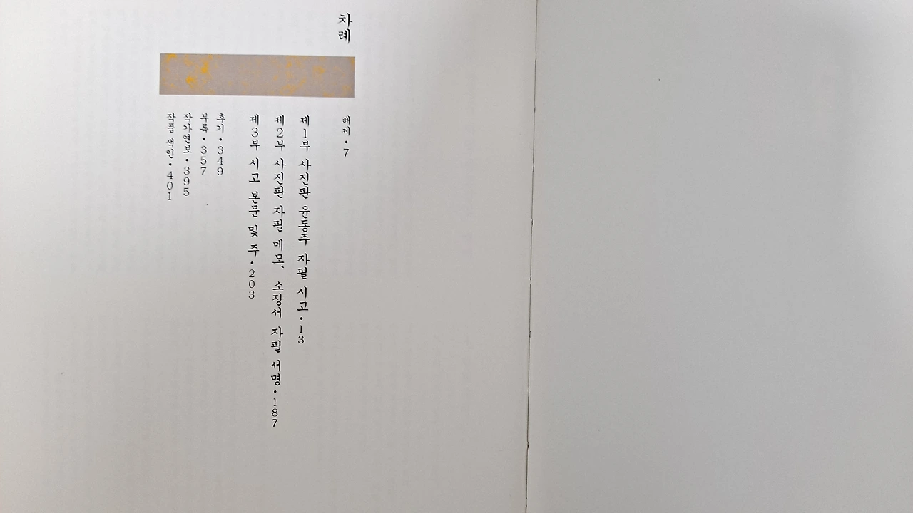 『사진판 윤동주 자필 시고 전집』의 목차는 다음과 같다.