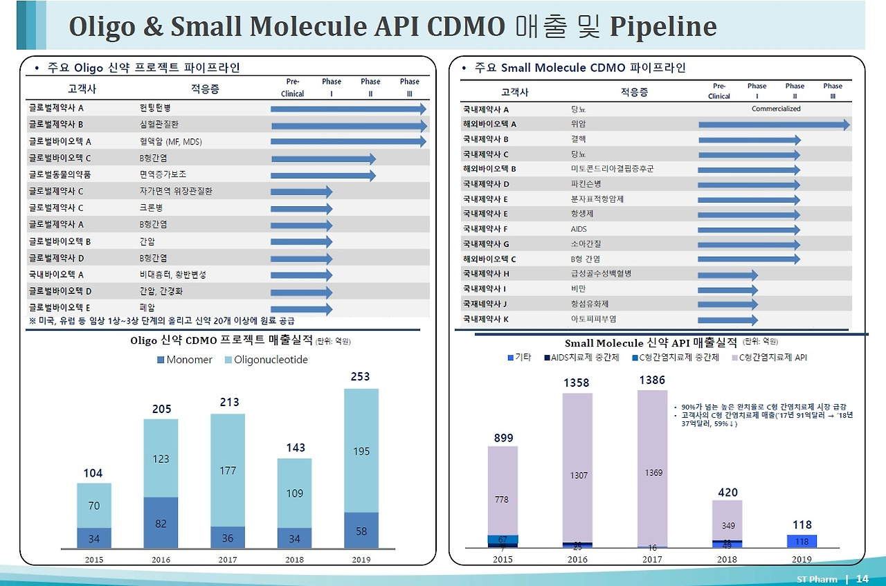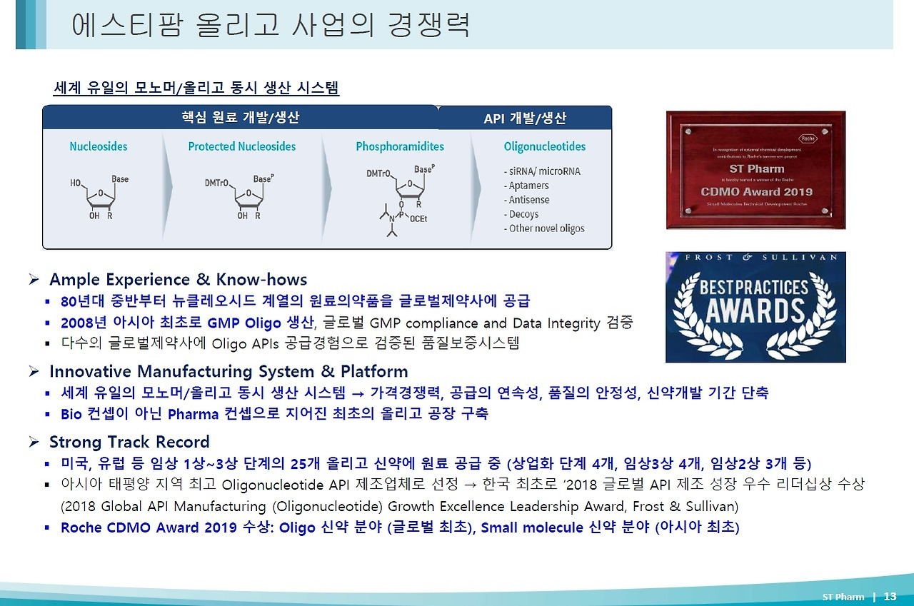 특징: 2021년 공급물량, 상업화 원료 추가로 2022년부터 최소 물량 공급 계약 (100kg/년) ⇒ 올리고 분야 누적 수주잔고 1억달러 돌파 수주 증가 (’19년 $36M→’20년 $73M)