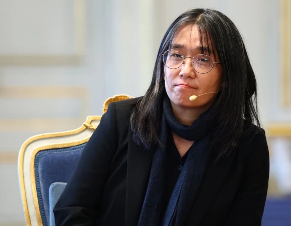 2024 노벨문학상 수상자인 한강 작가가 6일(현지시간) 스웨덴 스톡홀름 노벨상박물관에서 기자회견을 하고 있다. 연합뉴스