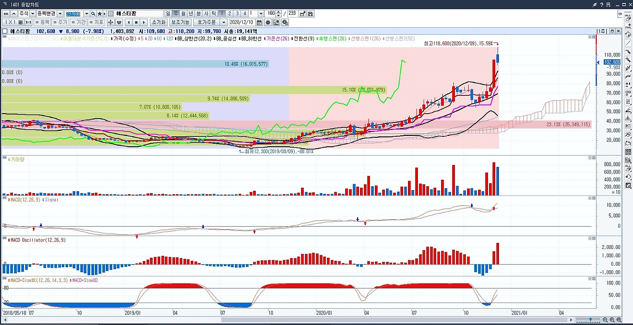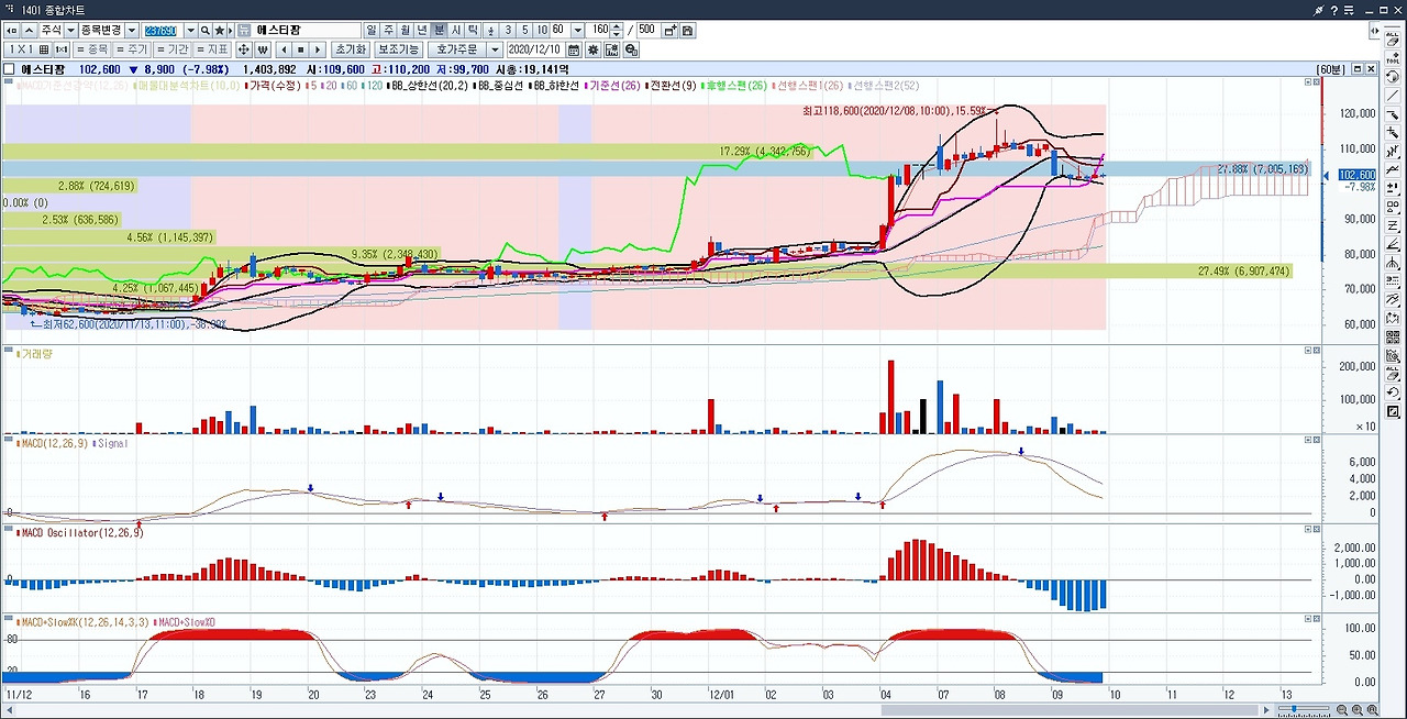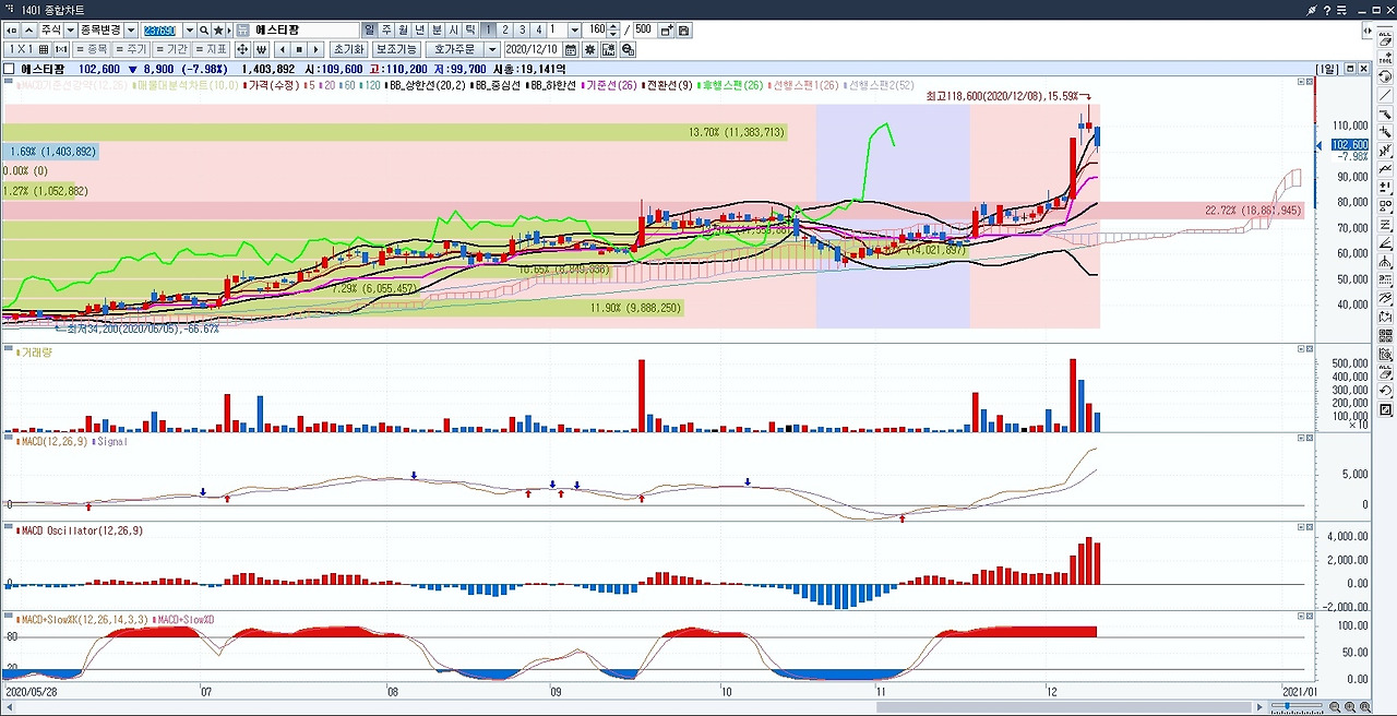 4. 일봉상으로 보면 단기 과열권 진입 8만원 ~ 12만원 횡보 예상