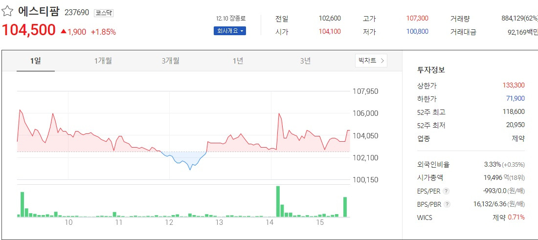 12월 10일 에스티팜(104,500 +1.85%)(237690)은 수주공시를 발표했다.