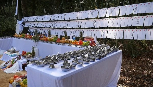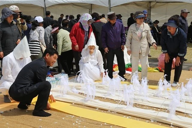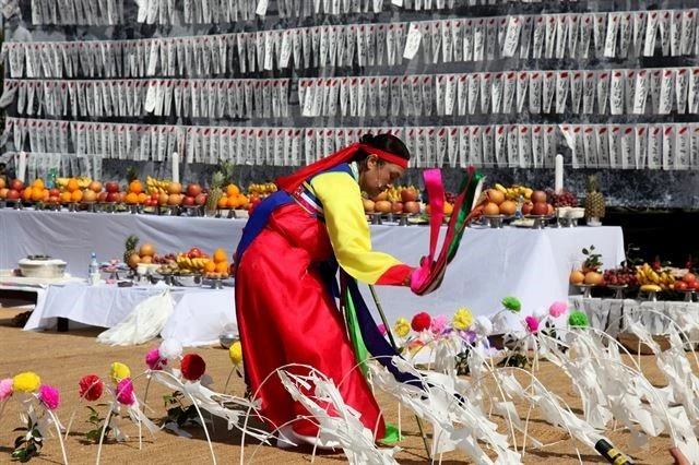 이름을 모두 불러내어 해원상생 굿을 하고 있습니다